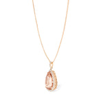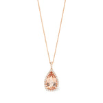 Make a statement in soft, sunset-pink glow. This stunning necklace features a 10.21ct pear-shaped natural morganite framed by a sparkling diamond halo totaling 0.68cttw. Crafted in 14k rose gold and finished with an 18" adjustable round-link chain and a spring ring clasp, it’s an unforgettable piece designed to shine.