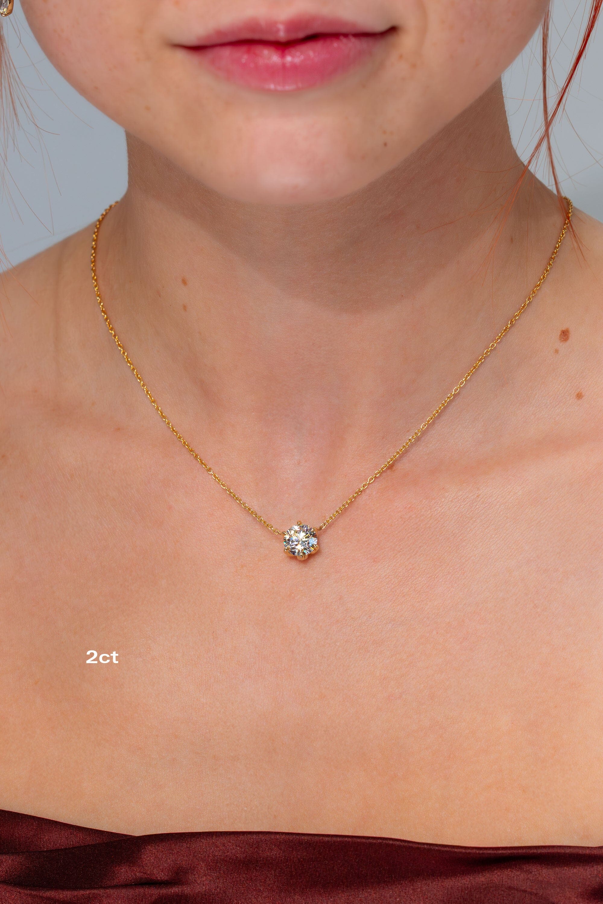 Designed to complement our signature petal prong engagement rings, the Caraline Round Diamond Pendant is a timeless piece with a delicate yet distinctive touch. Featuring our signature petal prong setting, this design beautifully enhances the brilliance of the center diamond while adding a subtle floral-inspired detail. Thoughtfully crafted to pair perfectly with the Caraline, Victoria, Isabela, and other petal prong engagement rings, this pendant is an elegant extension of your cherished jewelry collection.