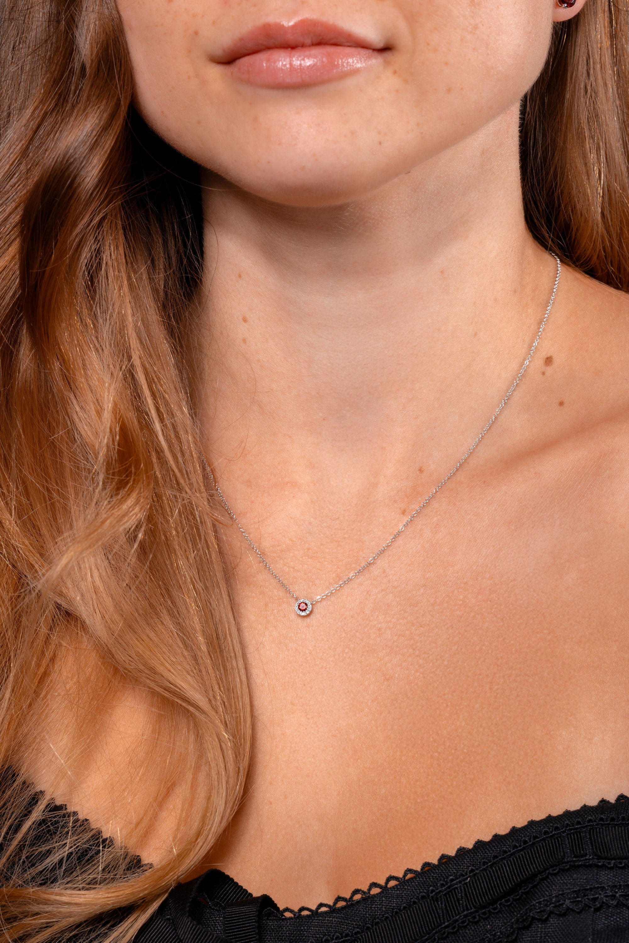 Garnet & Diamond Halo Necklace