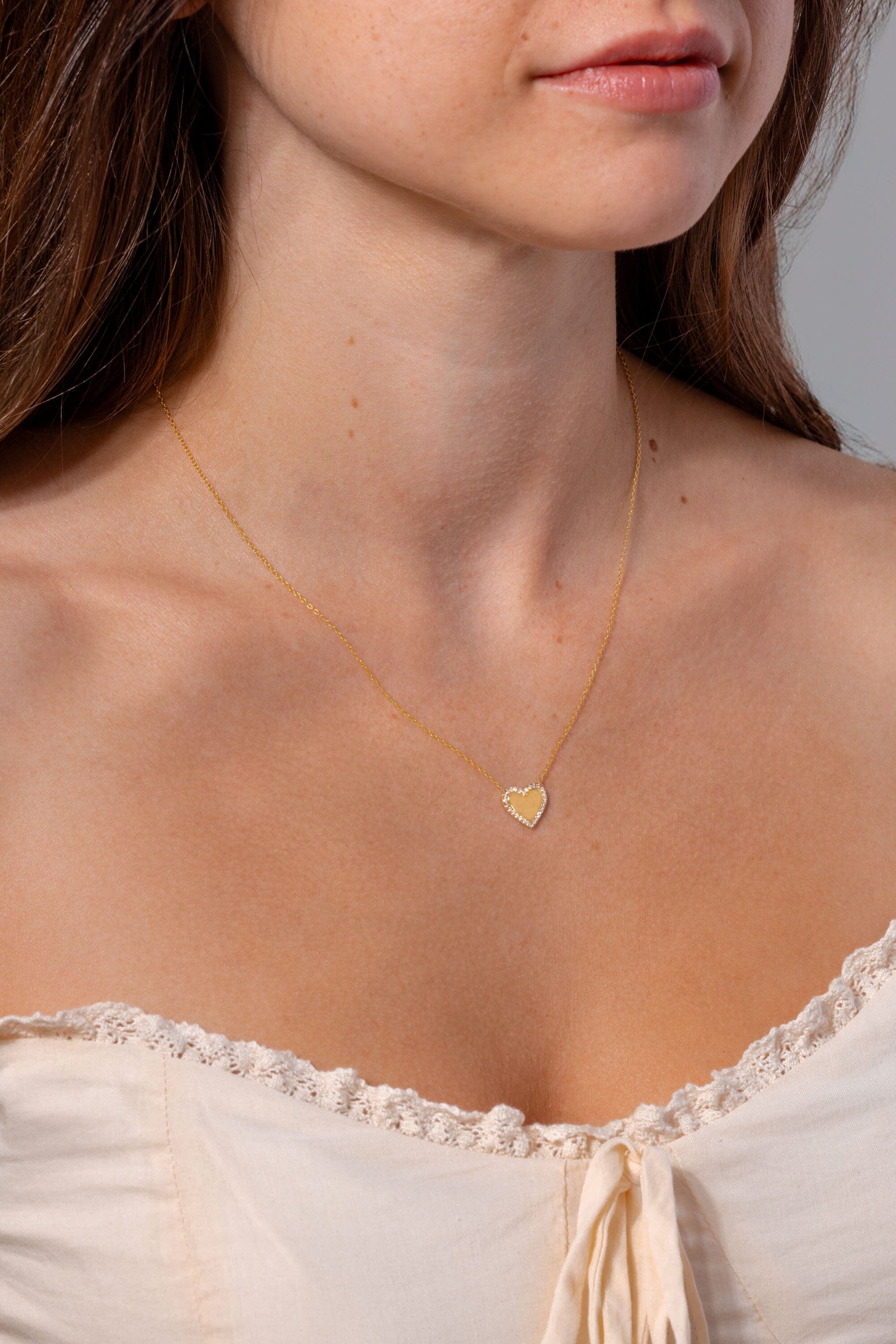 Pavé Diamond Border Engravable Heart Pendant