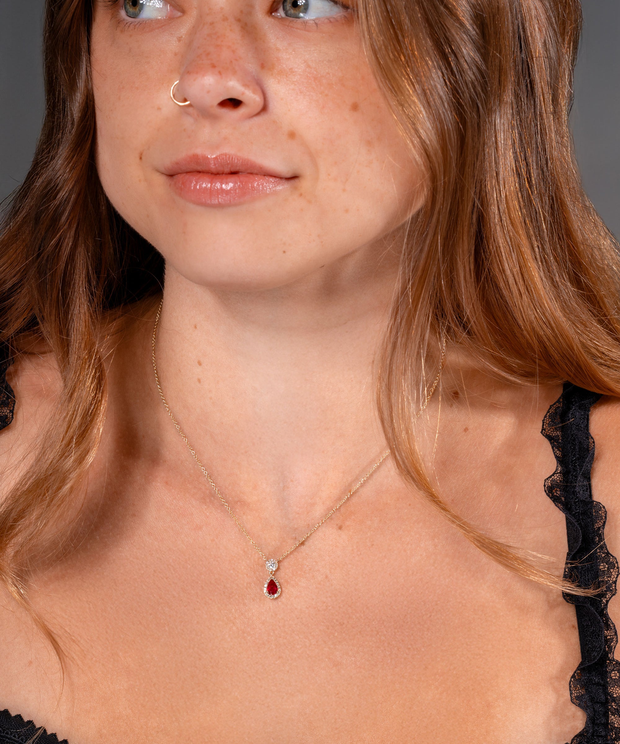 Pear Ruby Diamond Halo Drop Necklace