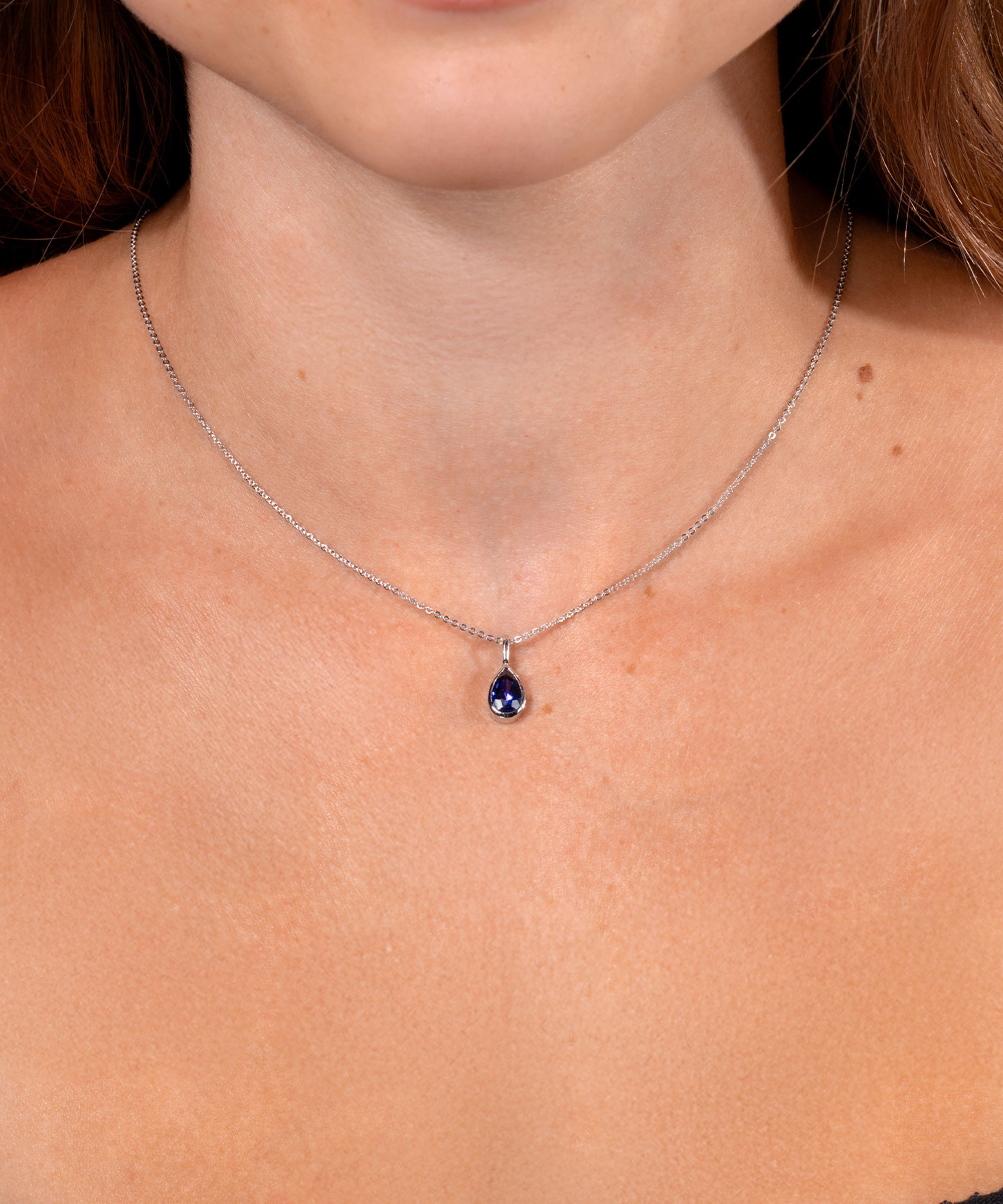 Sapphire Pear Bezel Necklace