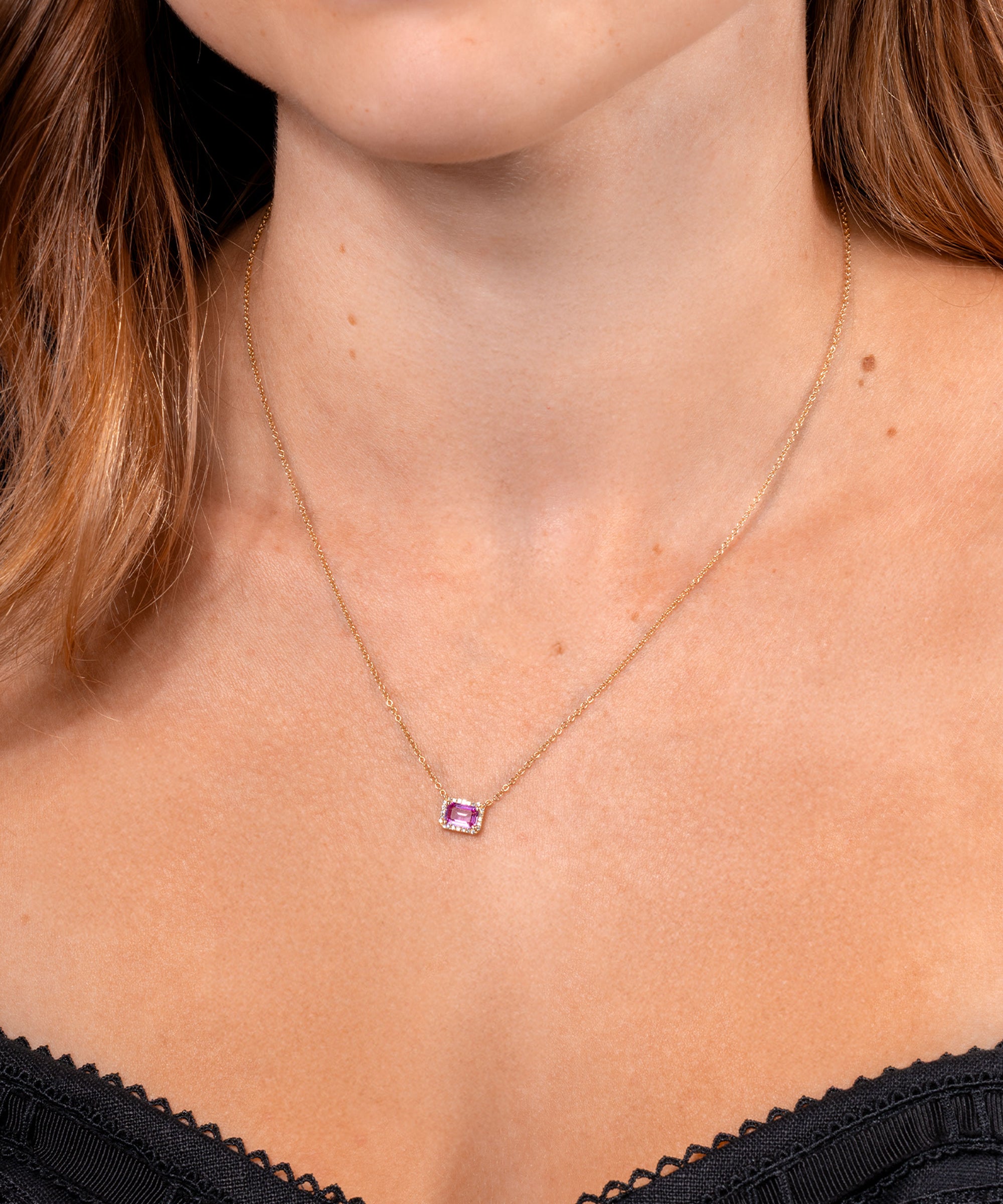 Diamond Halo Pink Sapphire Necklace