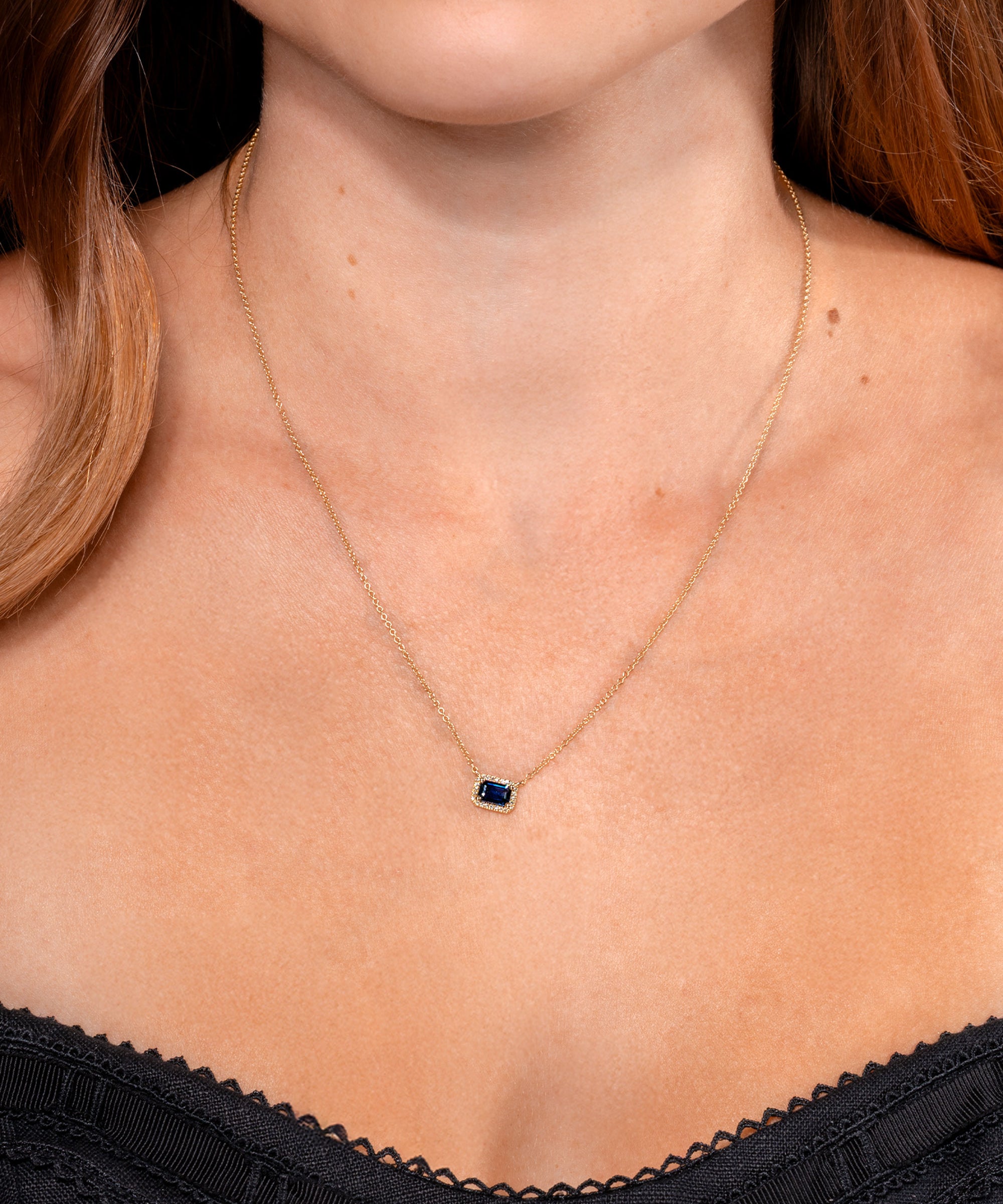 Diamond Halo Blue Sapphire Necklace