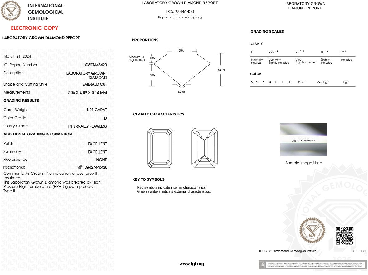 1.01ct D-IF Emerald Lab Diamond Lindsey