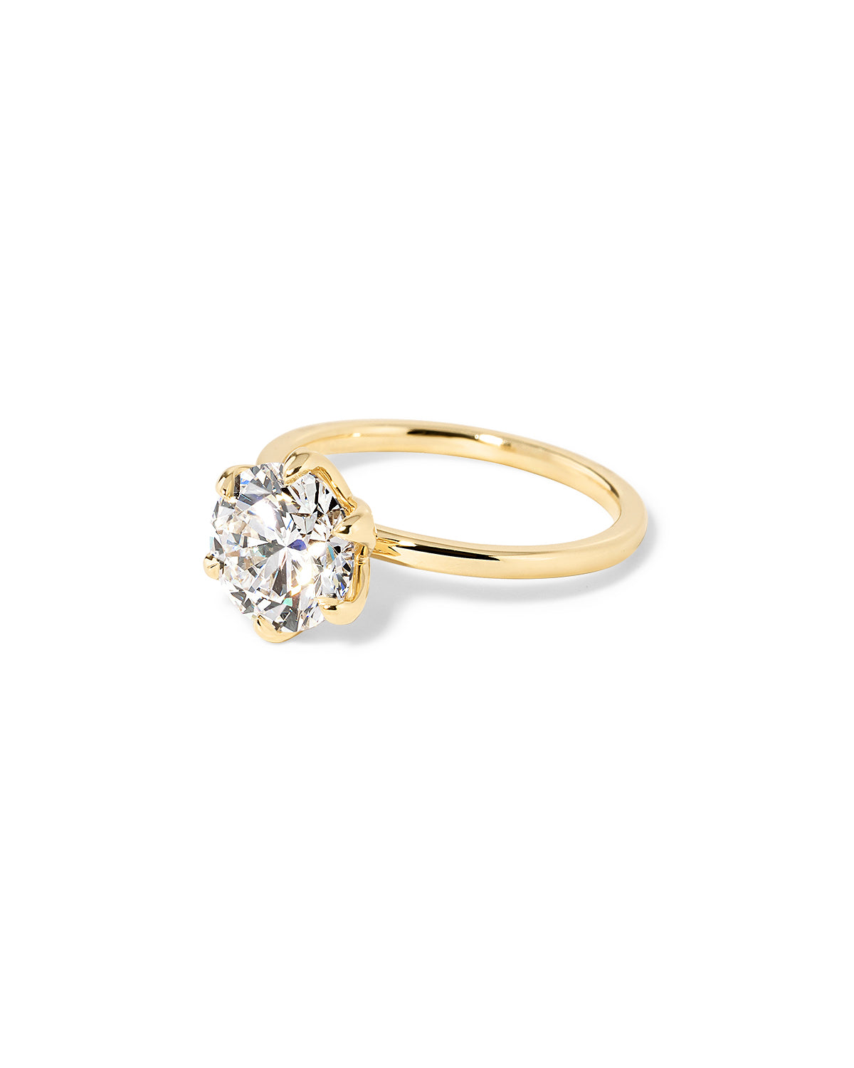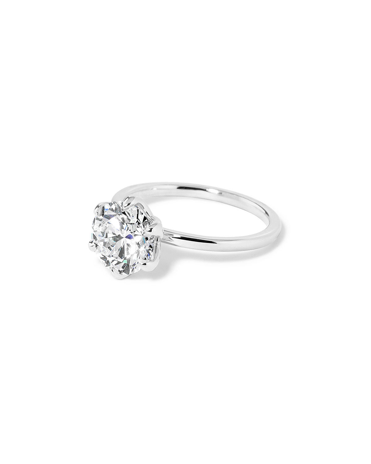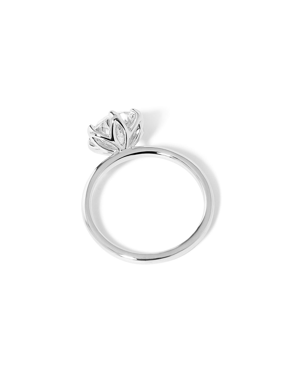 The Caraline, our signature petal prong engagement ring, is inspired by the delicate petals of a lotus flower. This exquisite ring features a unique petal prong setting, offered in a classic style with two elegant variations: a sleek, high-polish finish or a band adorned with sparkling pavé diamonds. Crafted for comfort, the Caraline boasts a rounded band to ensure a comfortable fit.