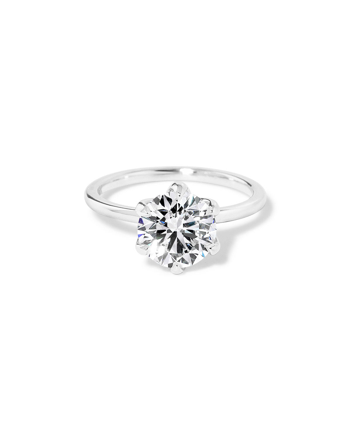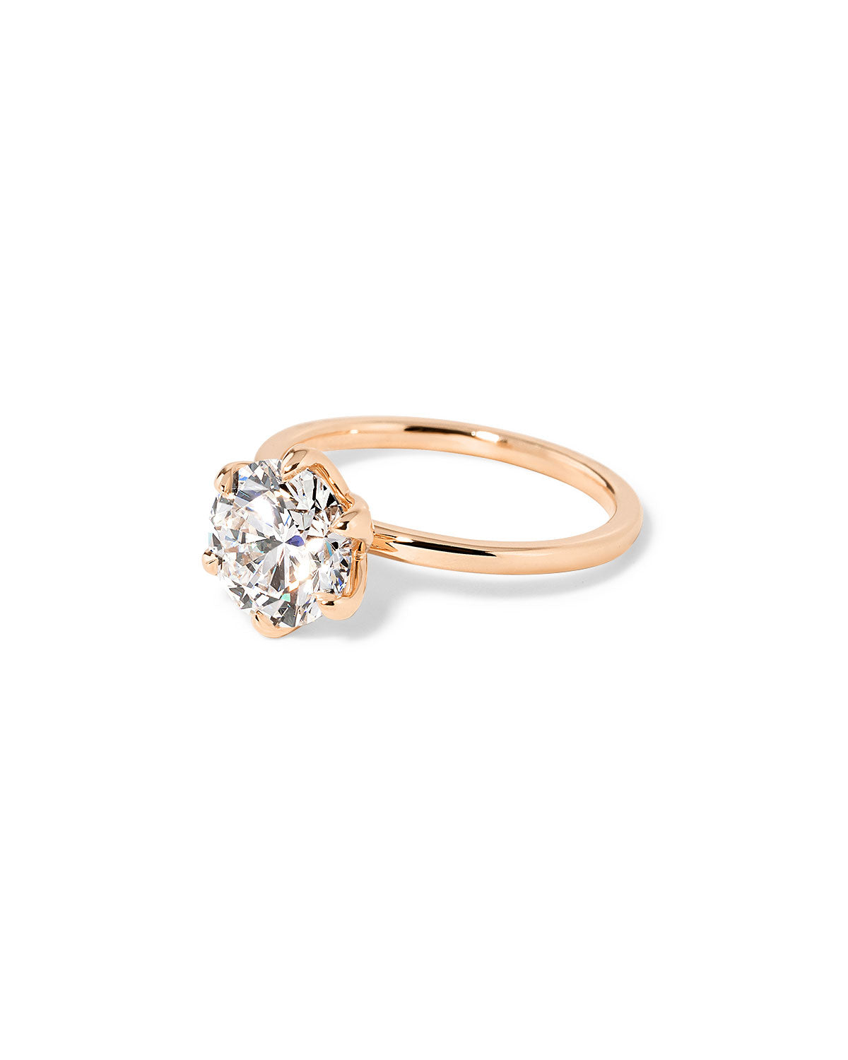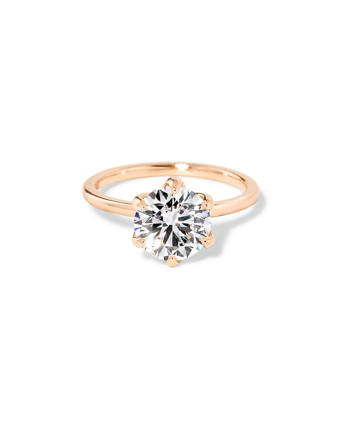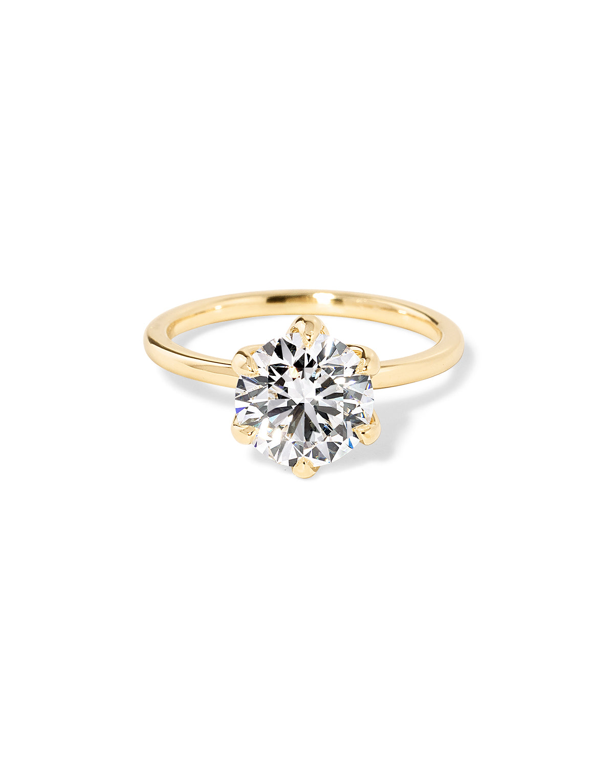 The Caraline, our signature petal prong engagement ring, is inspired by the delicate petals of a lotus flower. This exquisite ring features a unique petal prong setting, offered in a classic style with two elegant variations: a sleek, high-polish finish or a band adorned with sparkling pavé diamonds. Crafted for comfort, the Caraline boasts a rounded band to ensure a comfortable fit.