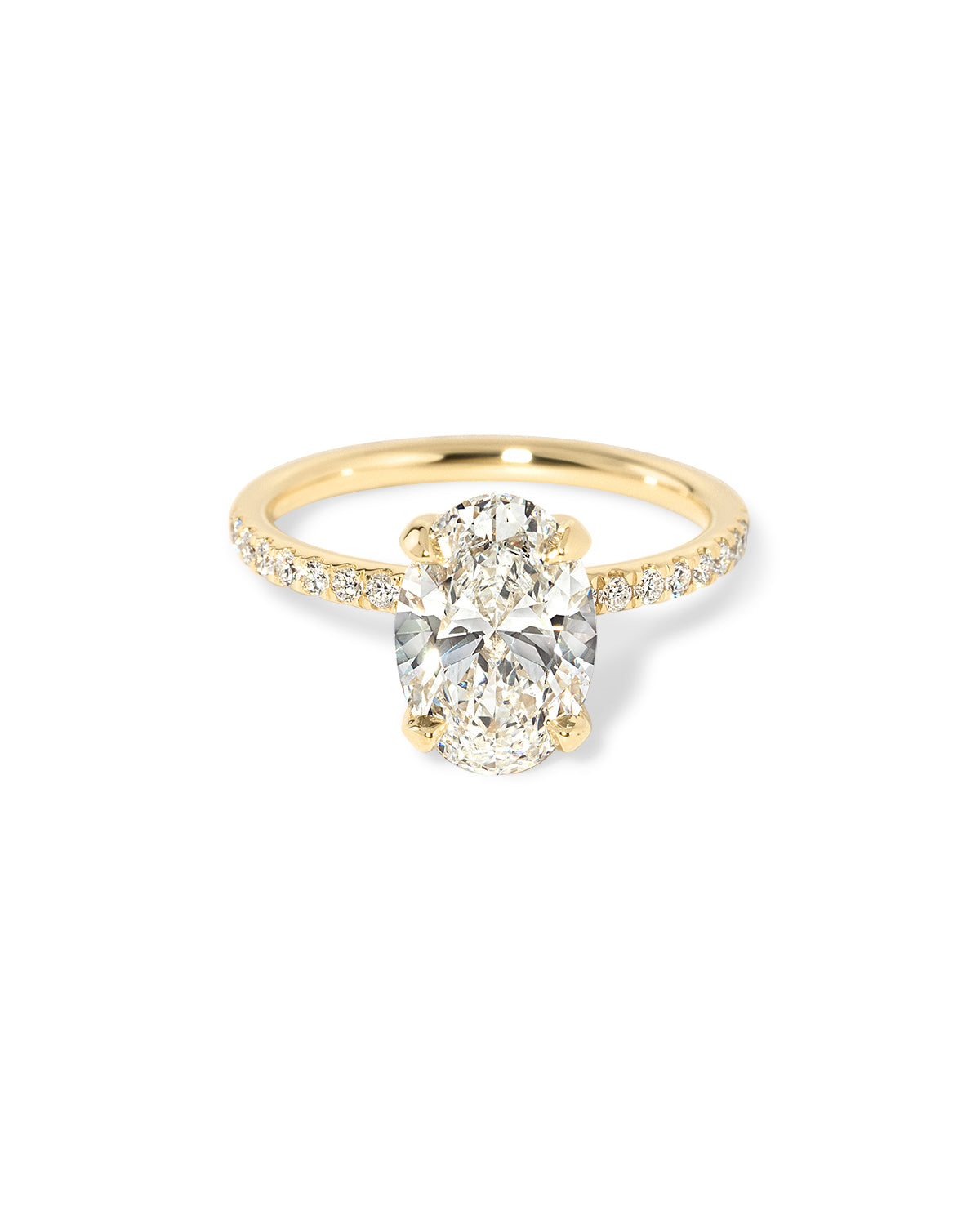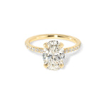 The Kayla features a classic pavé band with a hidden inner under halo.