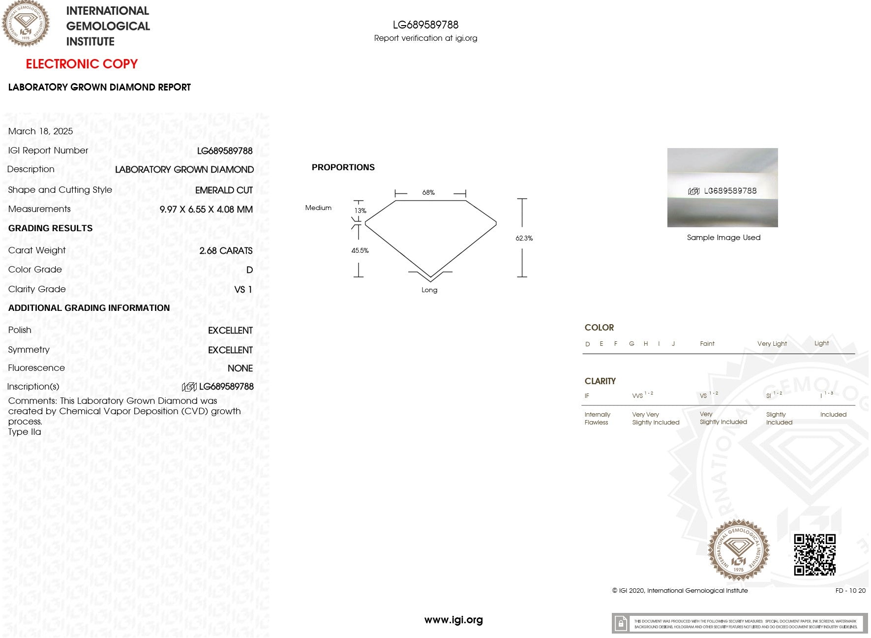 2.68ct D-VS1 Emerald Lab Diamond Alice