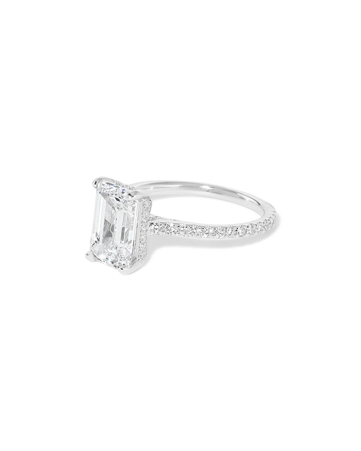 The Alice features a classic pavé band with a hidden inner under halo and cathedral-style body with a diamond bridge.