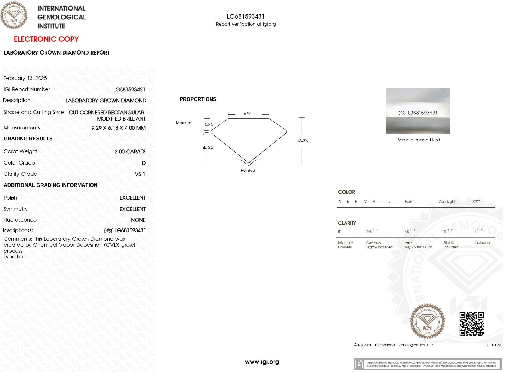 2.00ct D-VS1 Radiant Lab Diamond Nova