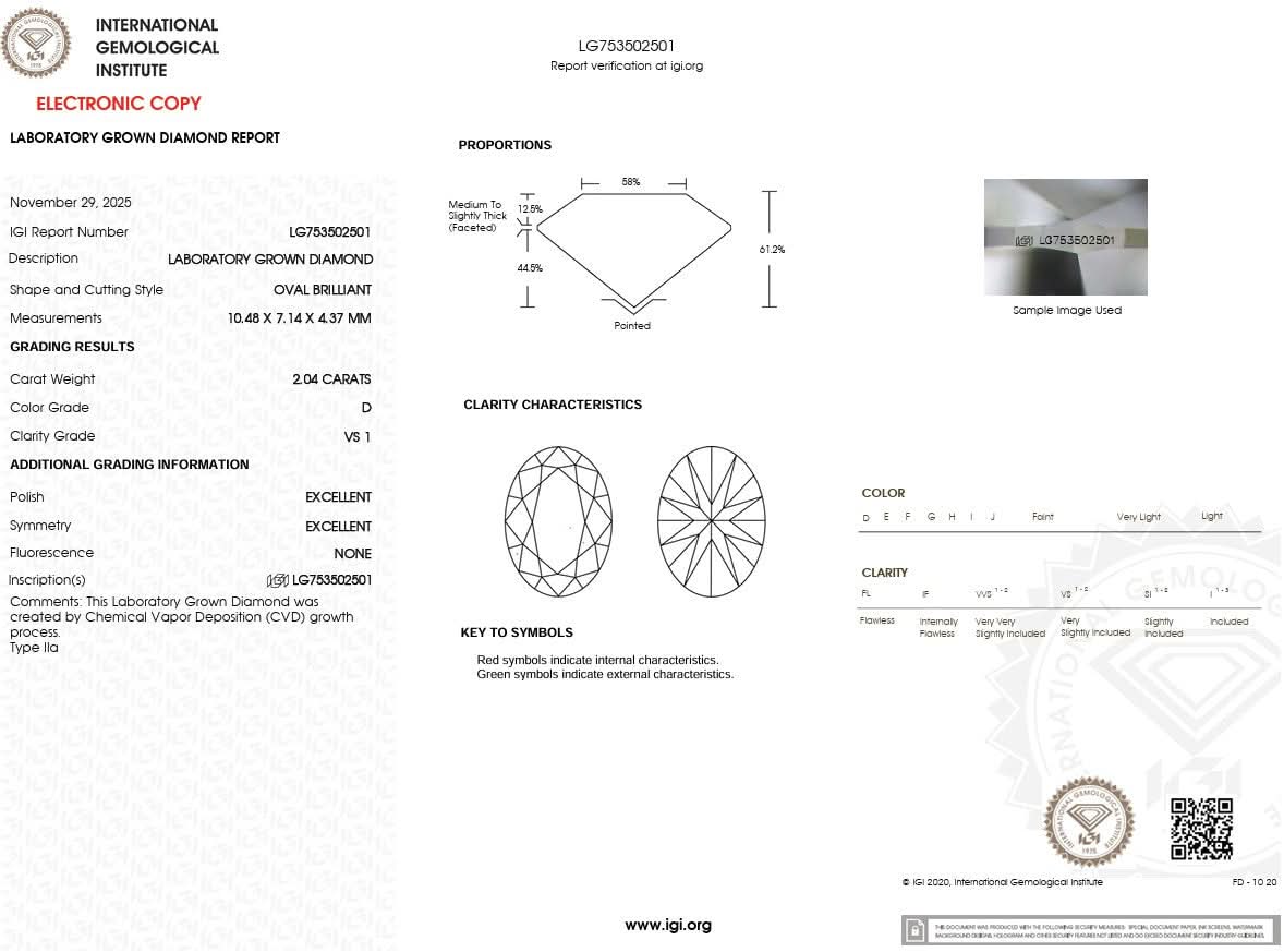 2.04ct D-VS1 Oval Lab Diamond Nova