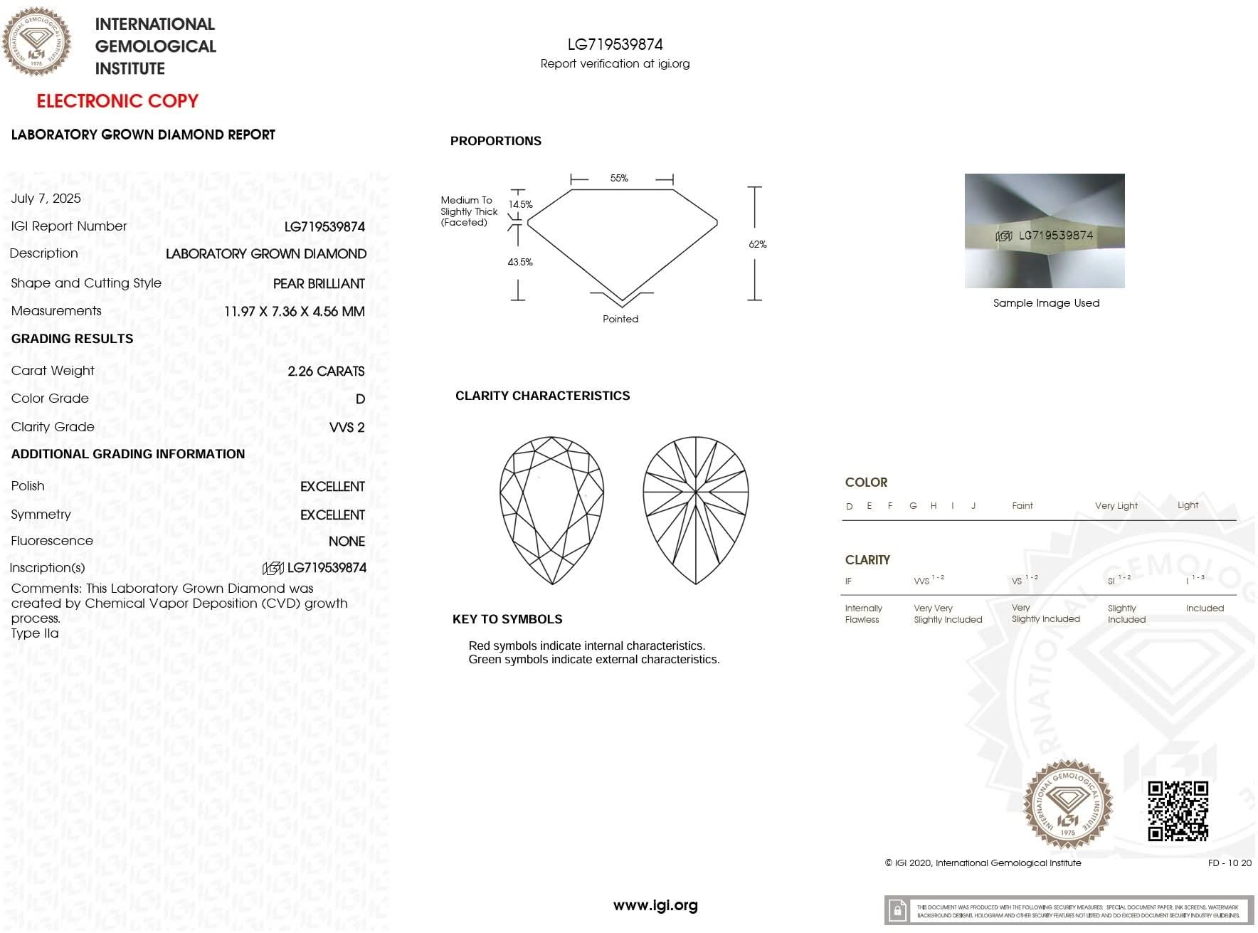 2.26ct D-VVS2 Pear Lab Diamond Nova