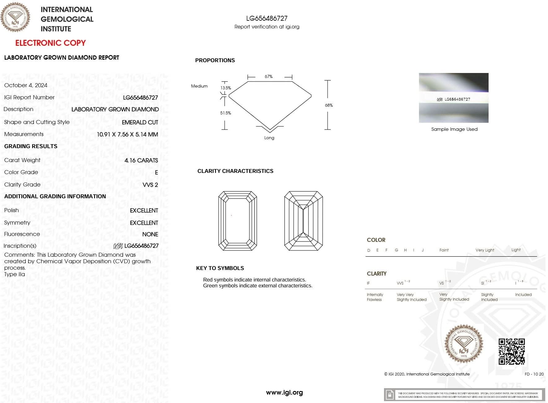 4.16ct E-VVS2 Emerald Lab Diamond Kayla