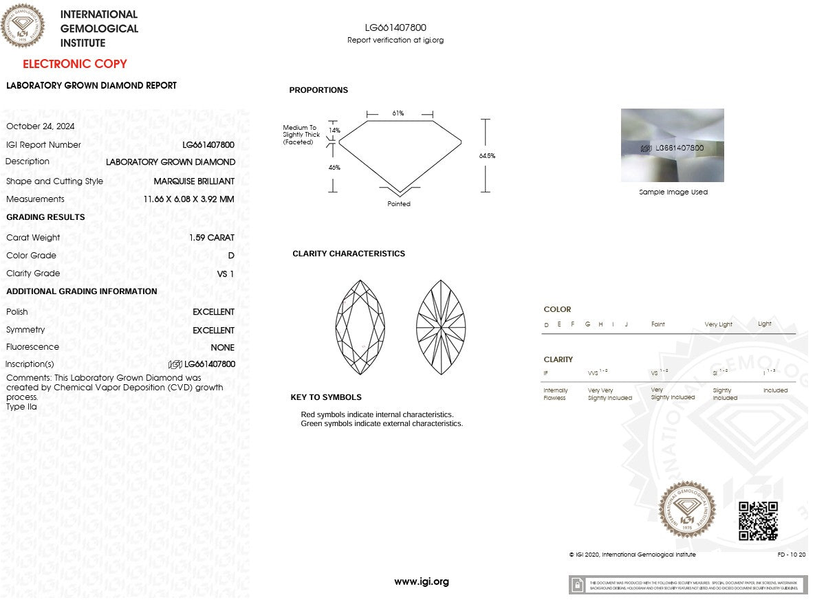 1.59ct D-VS1 Marquise Lab Diamond Nova
