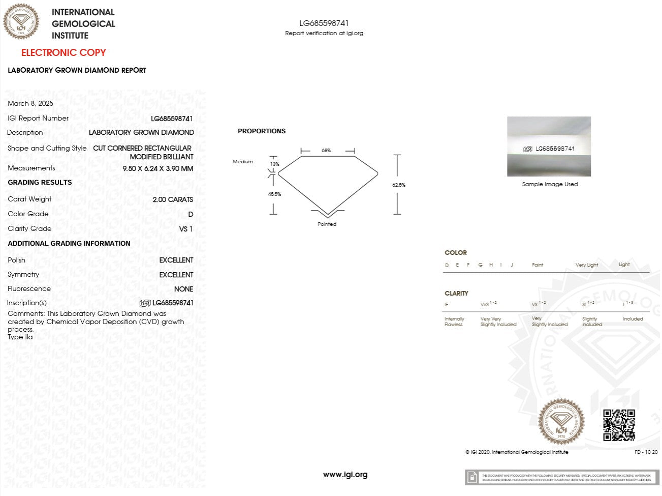 2.00ct D-VS1 Radiant Lab Diamond Kayla