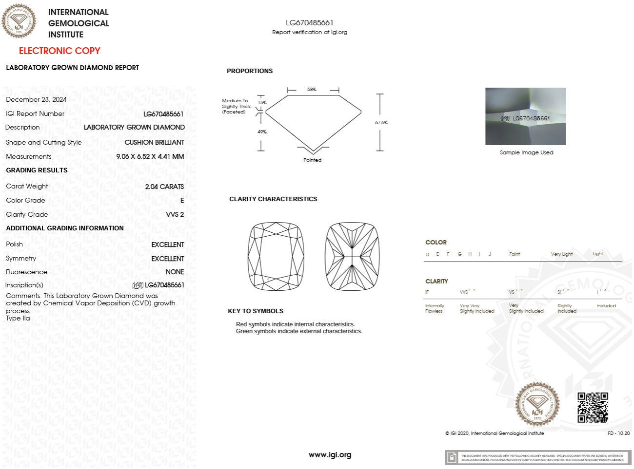2.04ct E-VVS2 Cushion Lab Diamond Leah Cathedral
