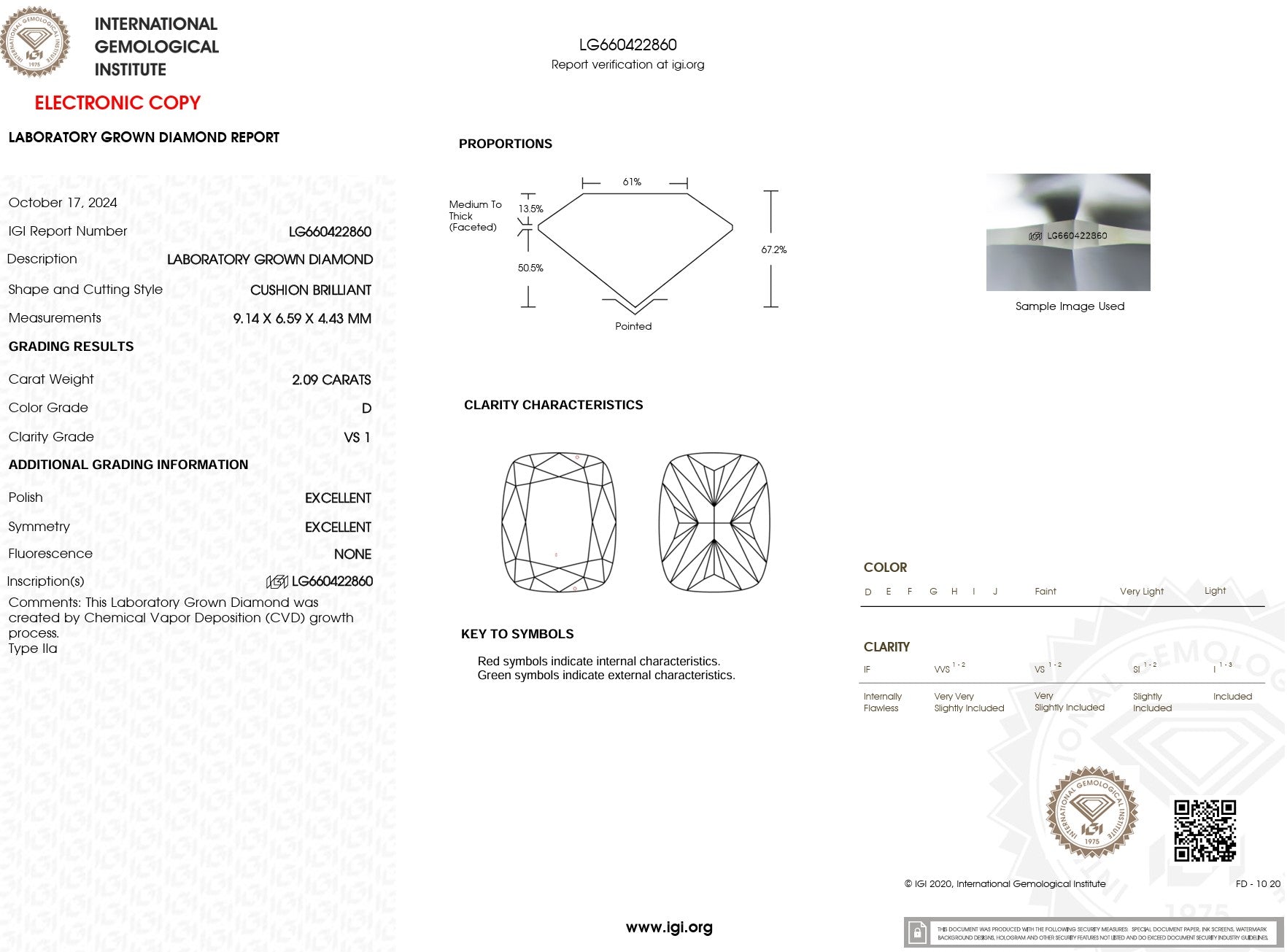2.09ct D-VS1 Cushion Lab Diamond Kayla