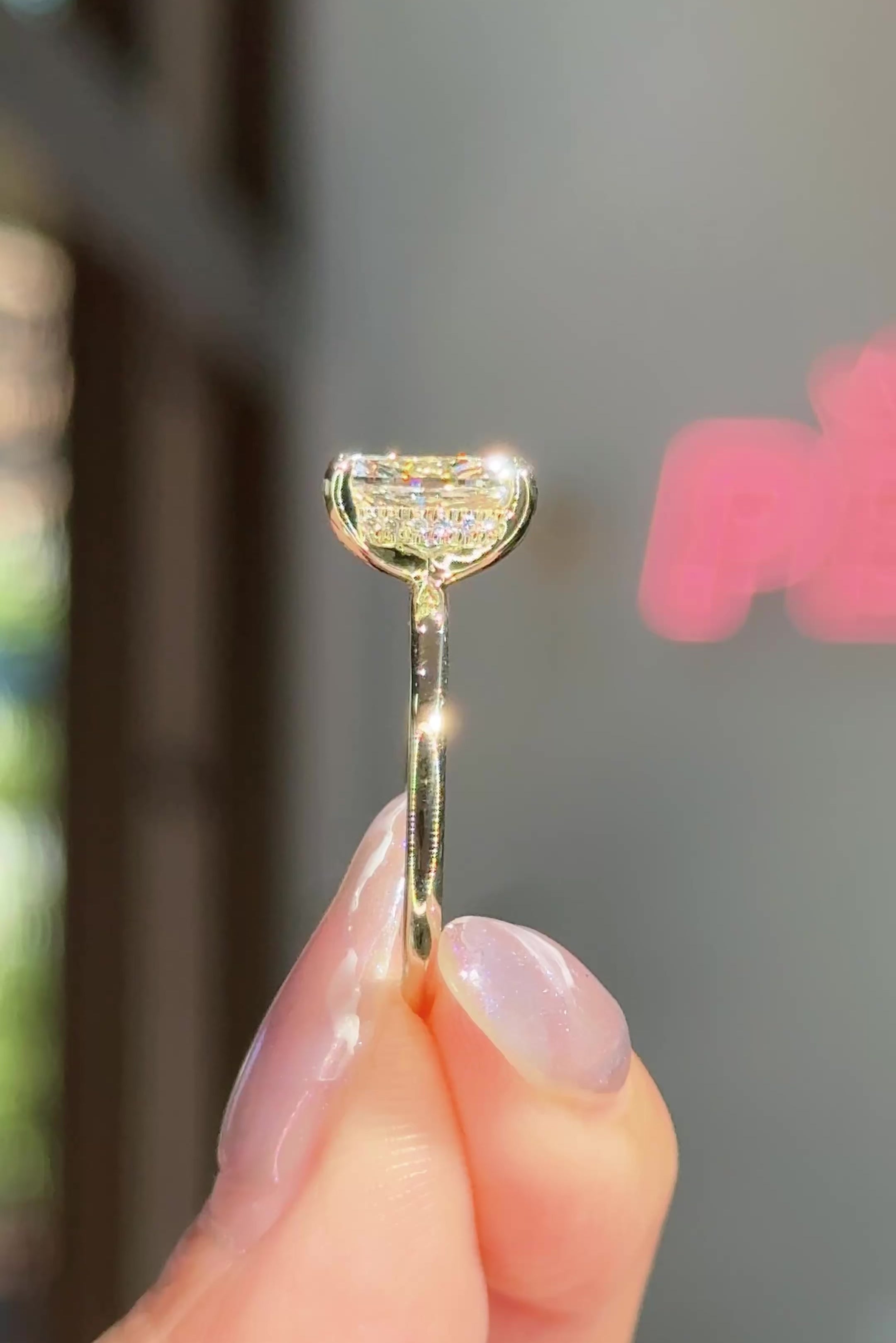 The Kayla elegantly showcases a classic comfort-fit band, subtly complemented by a hidden inner under-halo.