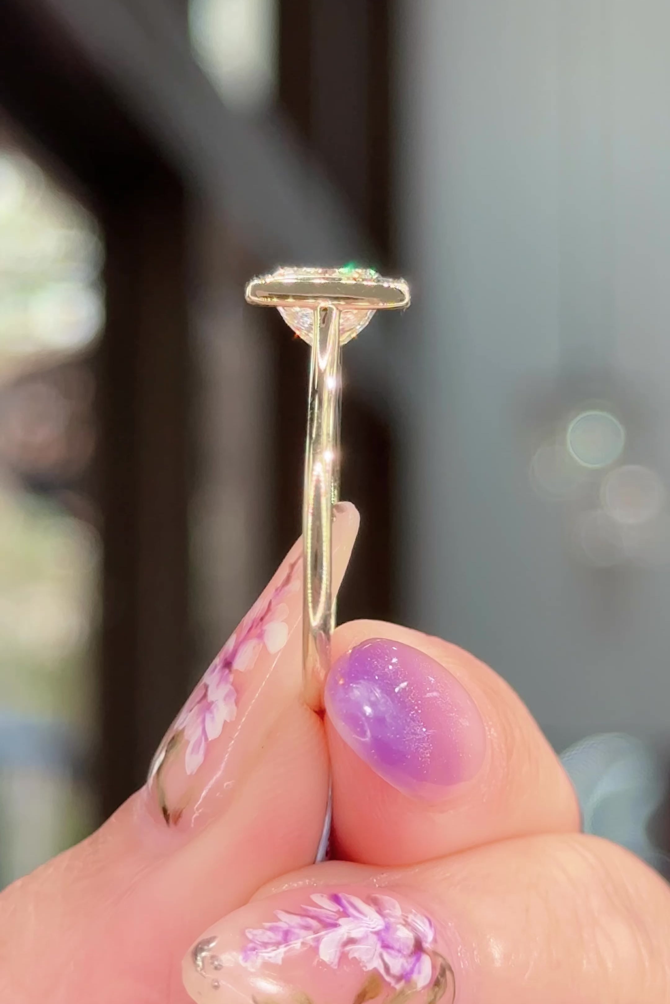 Diamonds and gemstones can appear dull over time due to everyday buildup from lotions, soaps, makeup, and natural oils. We recommend removing your ring before applying products and bringing it in regularly for professional cleaning. Complimentary cleanings and inspections are included for life.