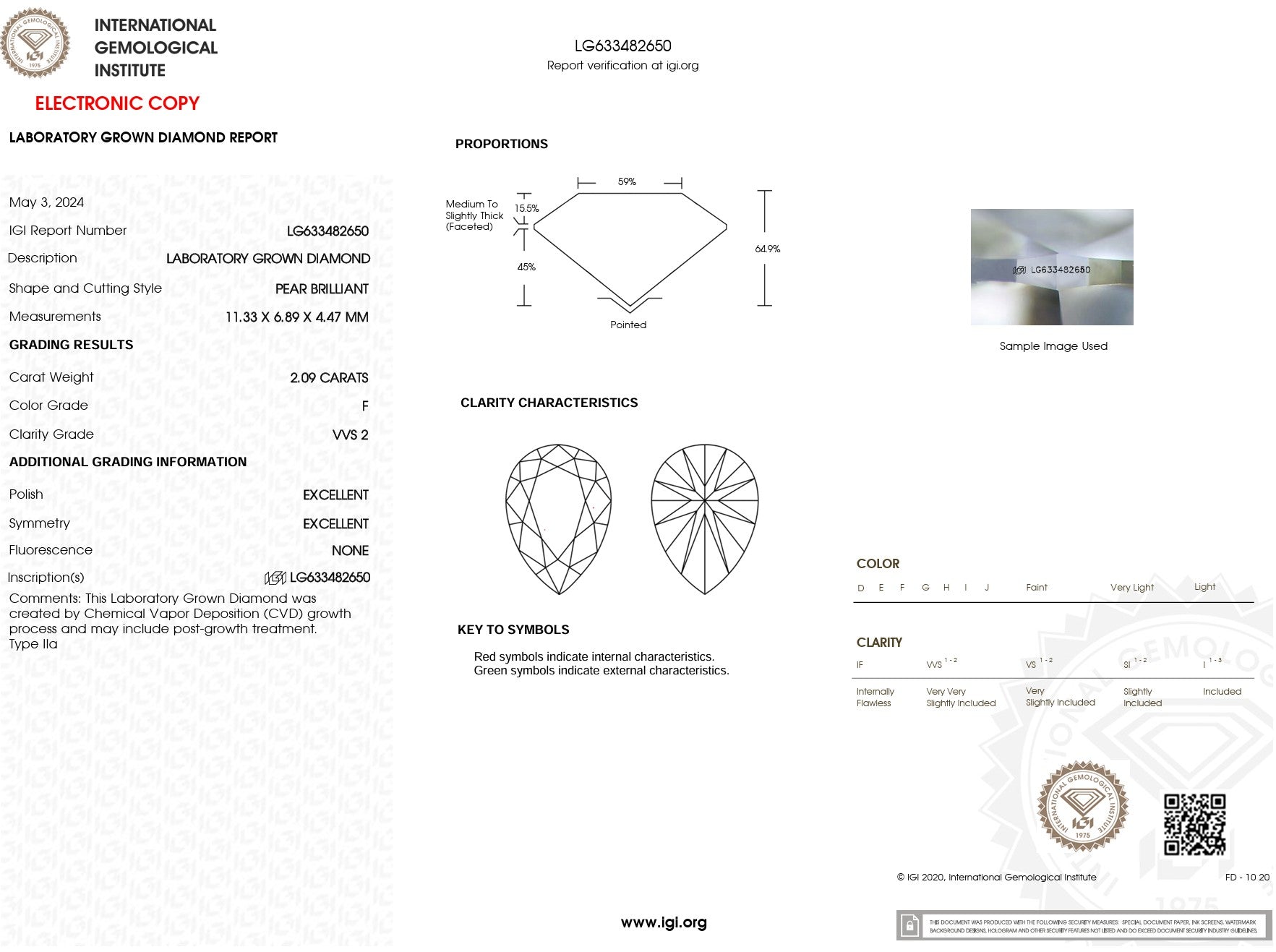 2.09ct F-VVS2 Pear Lab Diamond Kayla