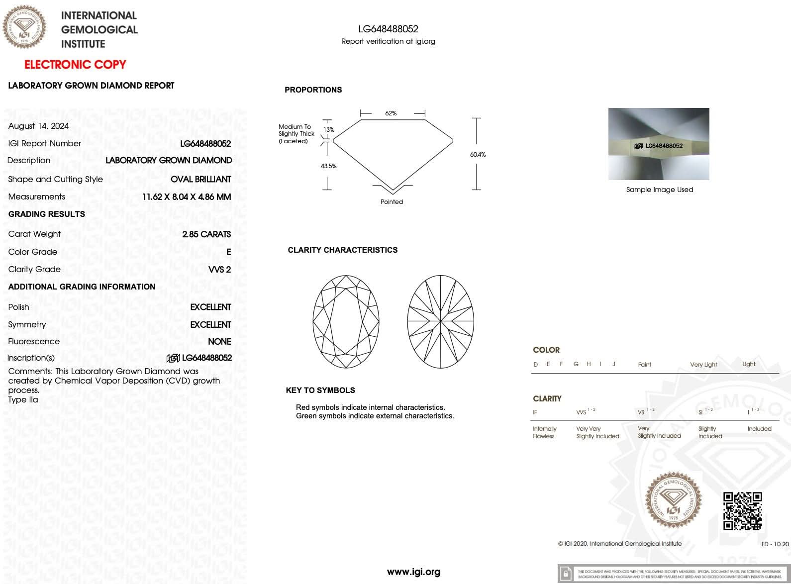 2.85ct E-VVS2 Oval Lab Diamond Lucia