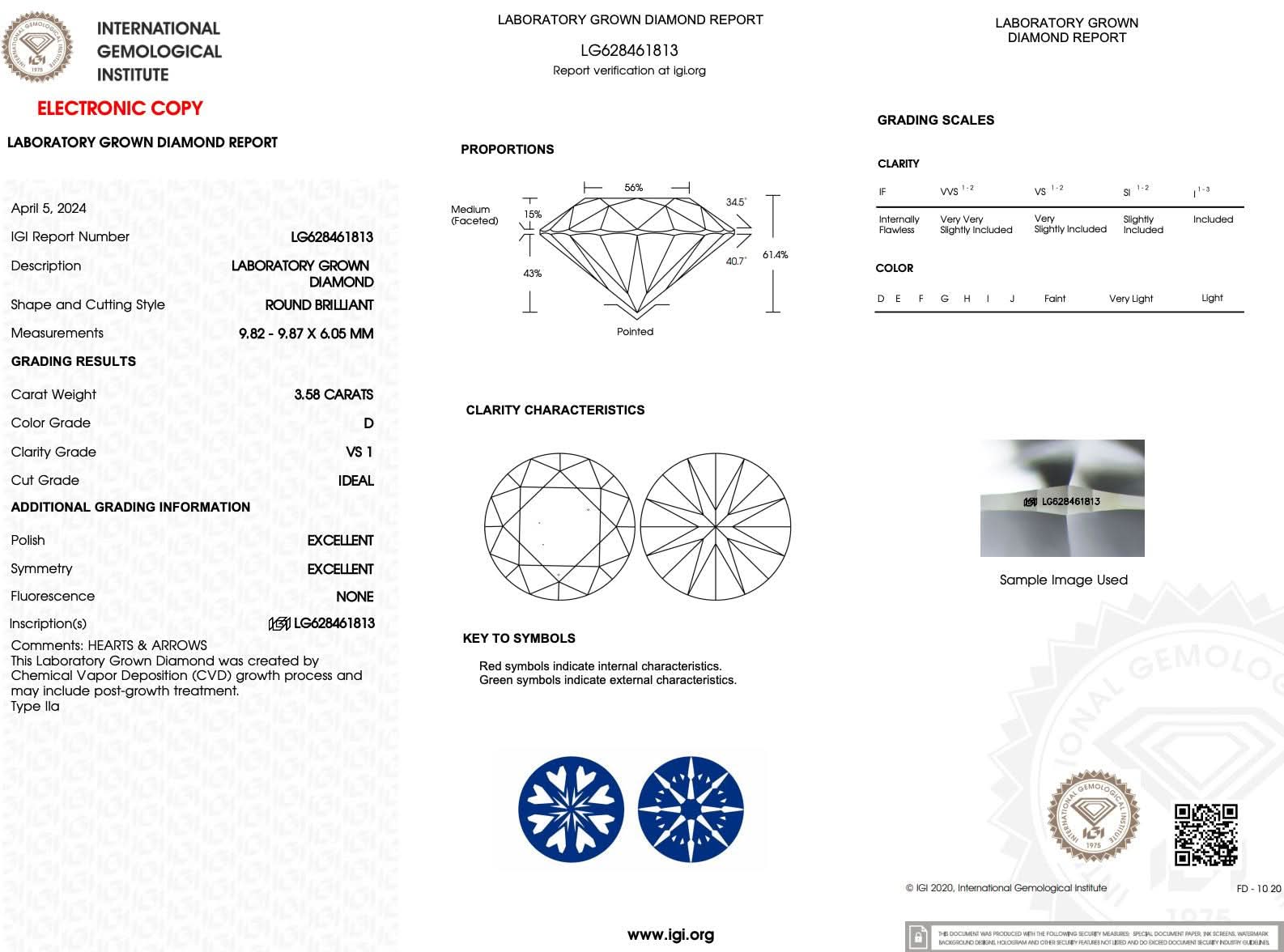 3.58ct D-VS1 Round Lab Diamond Kayla