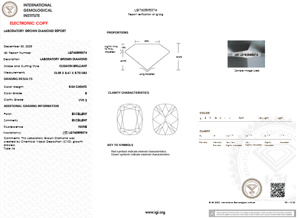 5.04ct E-VVS2 Old Mine Cushion Lab Diamond Evelyn