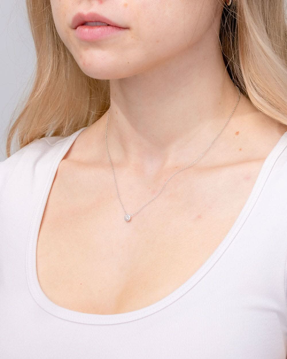 Mini Diamond Halo Necklace White Gold