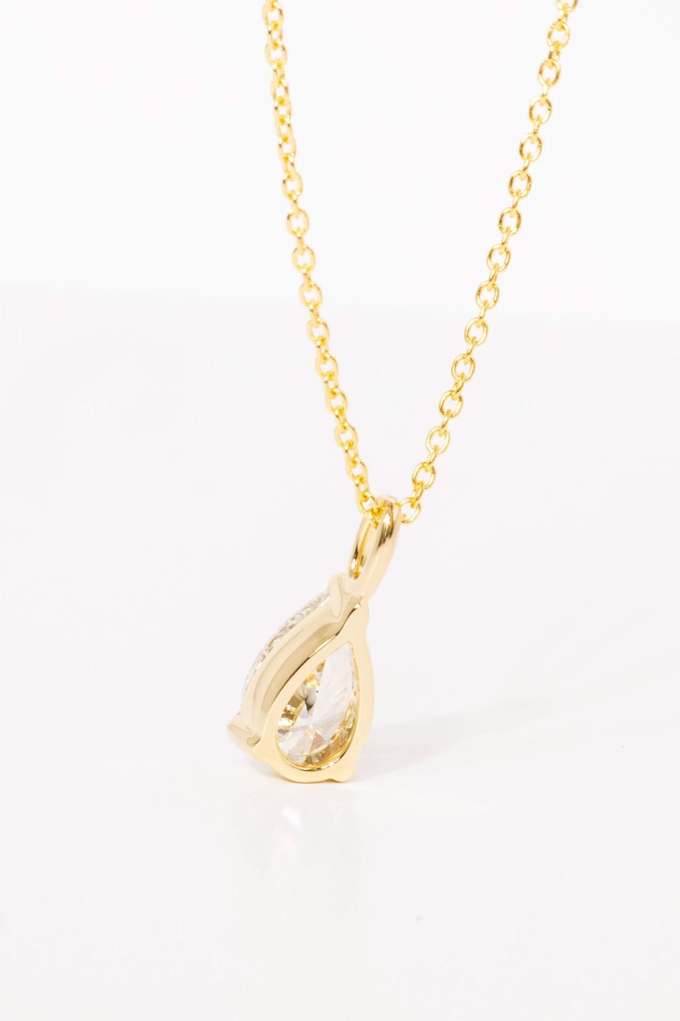 The Brandi Pear Necklace is a refined, durable upgrade to our classic core solitaire style, designed to elevate your everyday look. This pendant features a lab-grown pear-shaped diamond, set in our solid Brandi basket with a secure 3-prong design. It hangs from our upgraded thickness rolo chain, offering both strength and comfort for daily wear.
