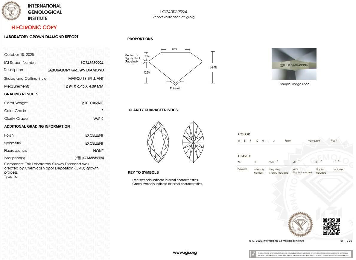2.01ct F-VVS2 Marquise Lab Diamond Leah Cathedral