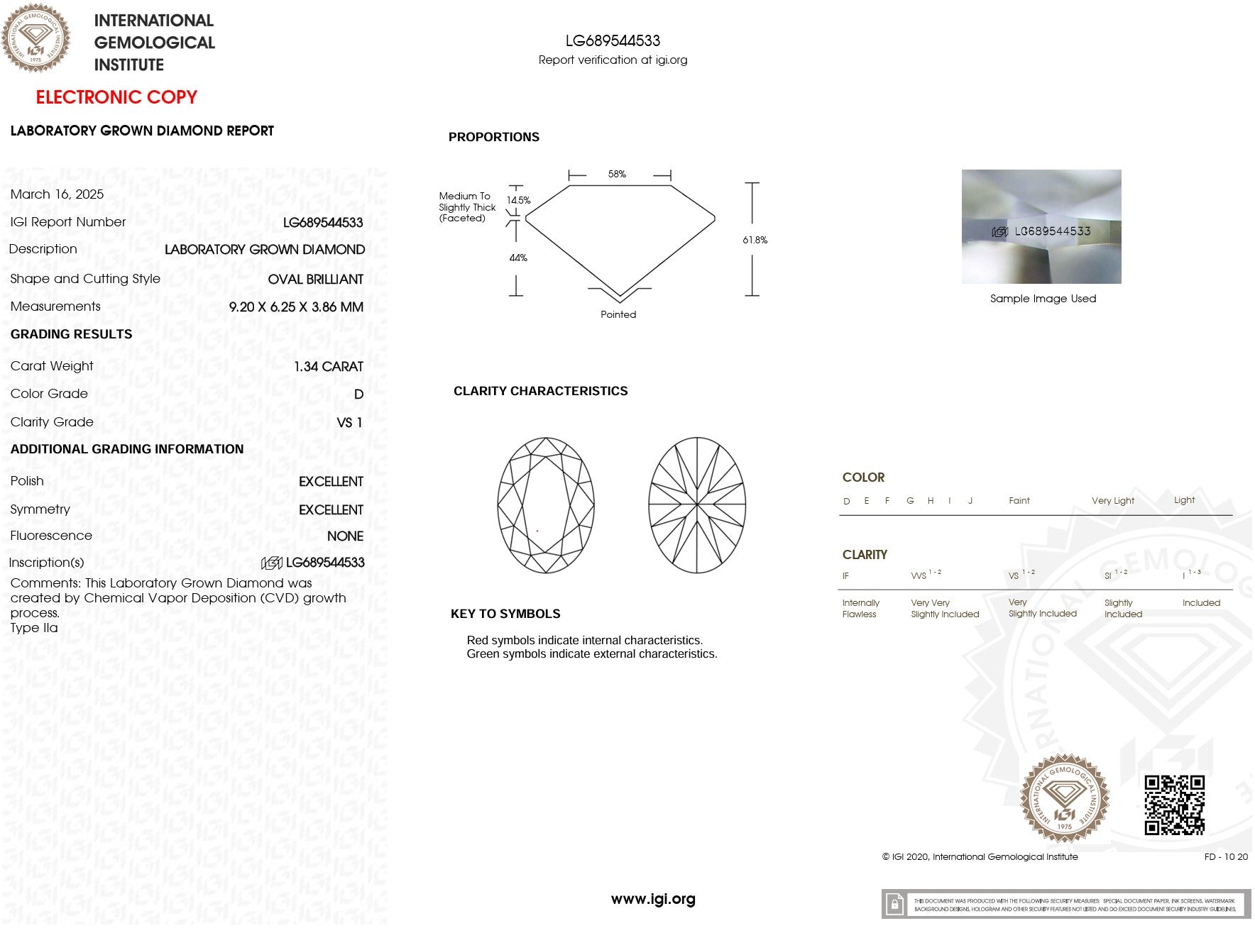 1.34ct D-VS1 Oval Lab Diamond Nova