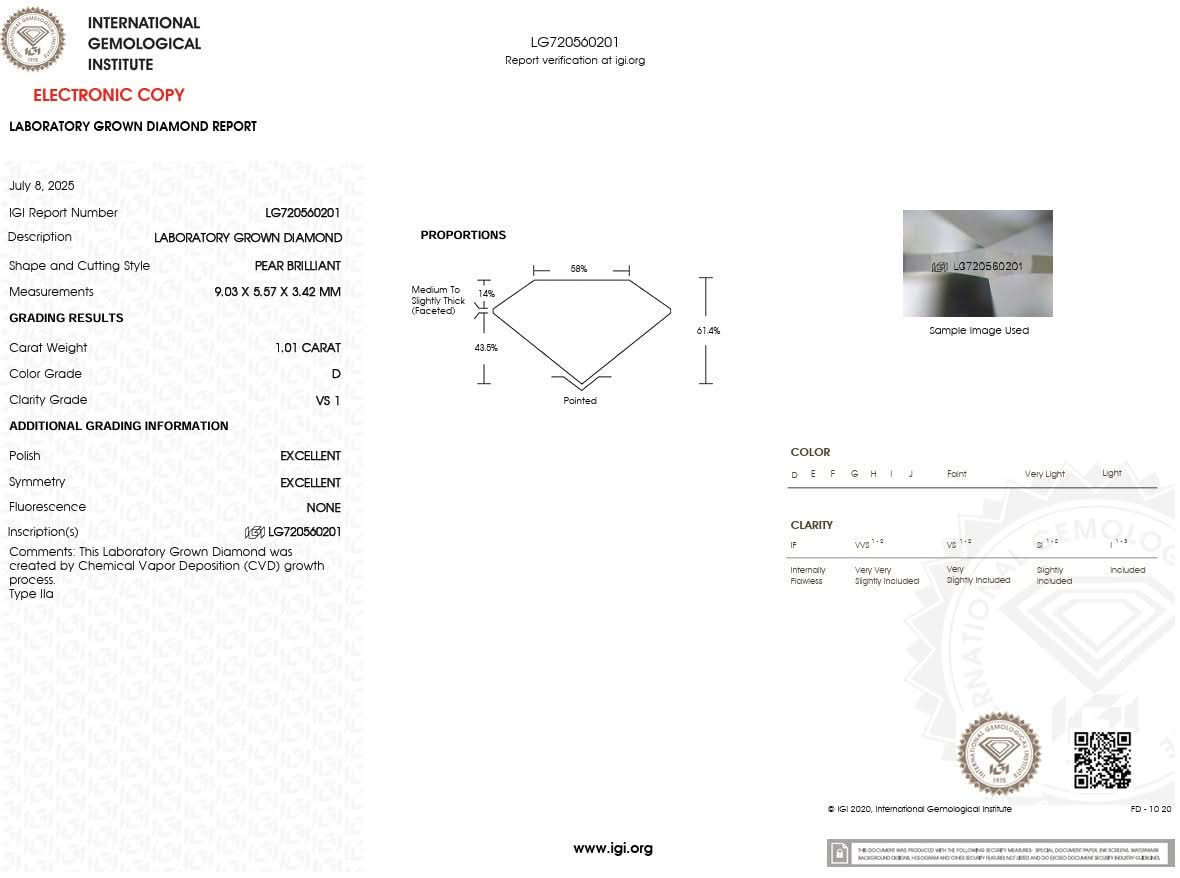 1.01ct D-VS1 Pear Lab Diamond Kaia