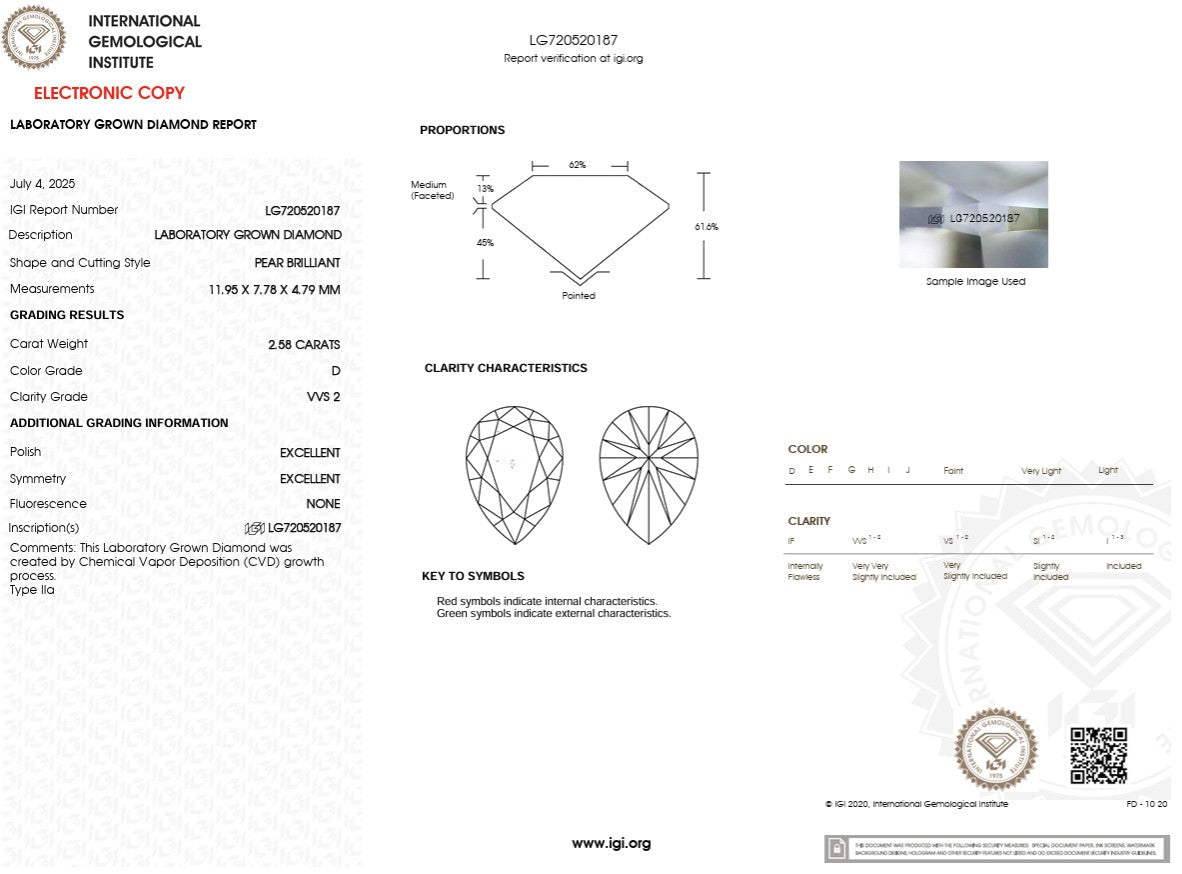 2.58ct D-VVS2 Pear Lab Diamond Samantha