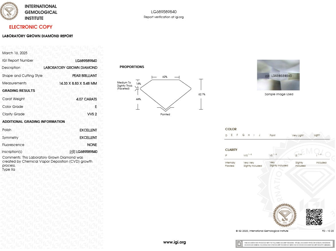 4.07ct E-VVS2 Pear Lab Diamond Hana