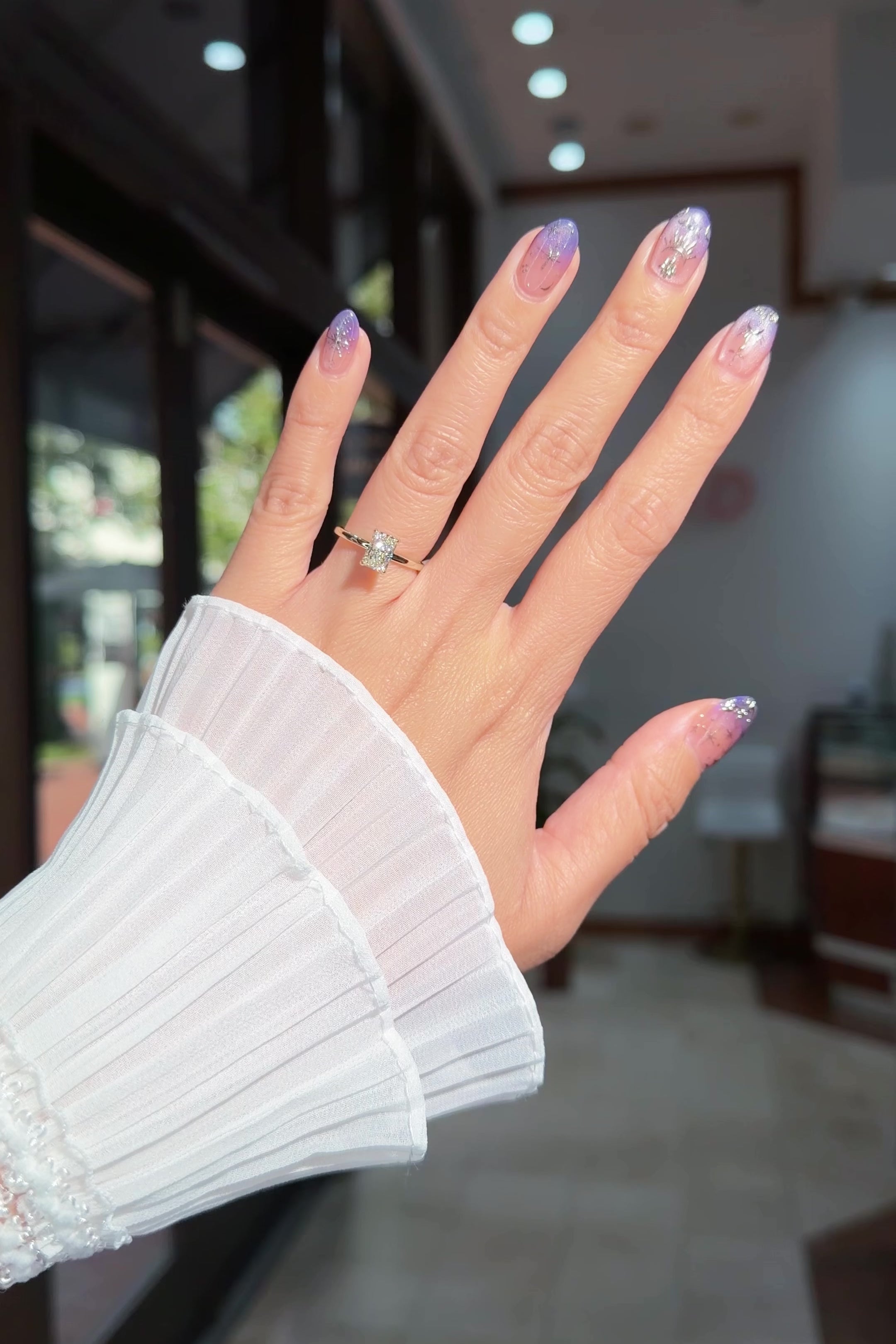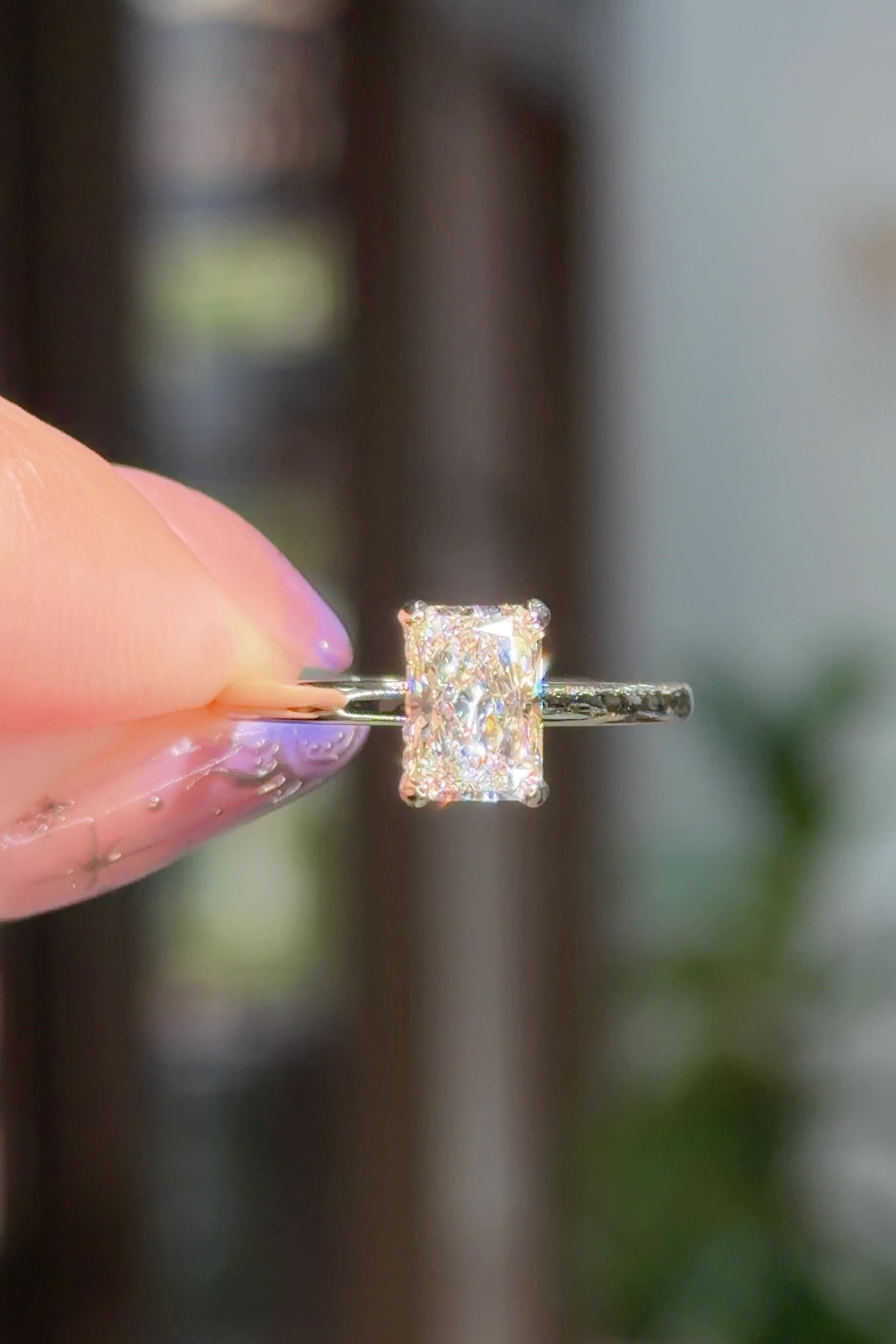 Diamonds and gemstones can appear dull over time due to everyday buildup from lotions, soaps, makeup, and natural oils. We recommend removing your ring before applying products and bringing it in regularly for professional cleaning. Complimentary cleanings and inspections are included for life.