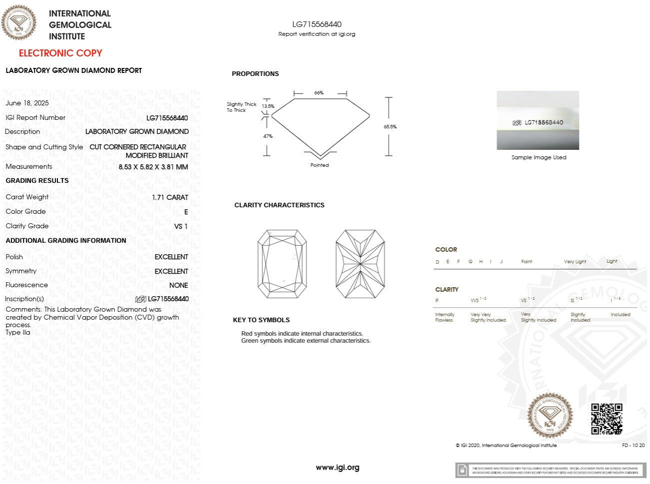 1.71ct E-VS1 Radiant Lab Diamond Leah