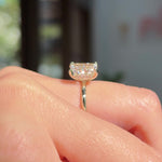 Diamonds and gemstones can appear dull over time due to everyday buildup from lotions, soaps, makeup, and natural oils. We recommend removing your ring before applying products and bringing it in regularly for professional cleaning. Complimentary cleanings and inspections are included for life.