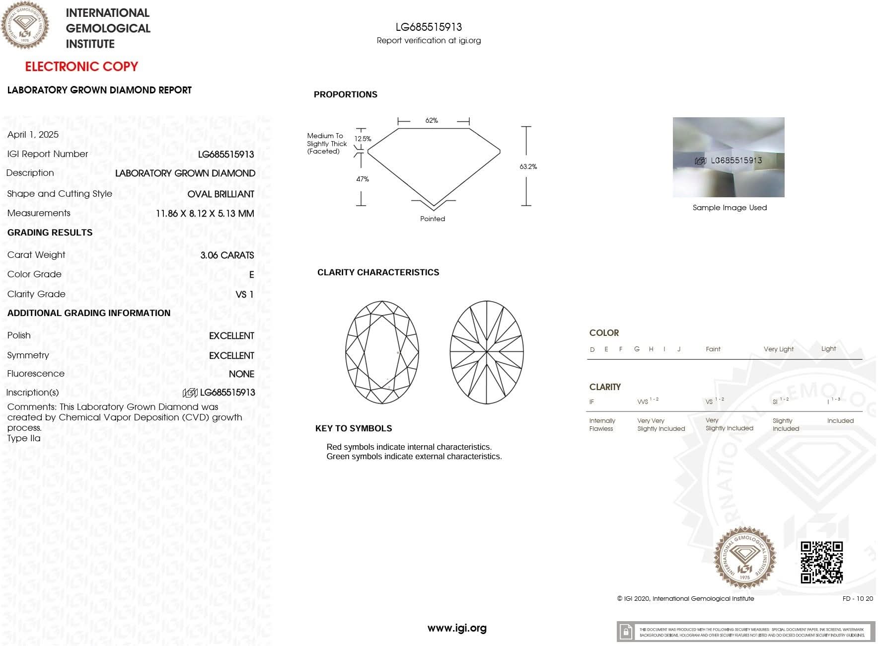 3.06ct E-VS1 Oval Lab Diamond Rei