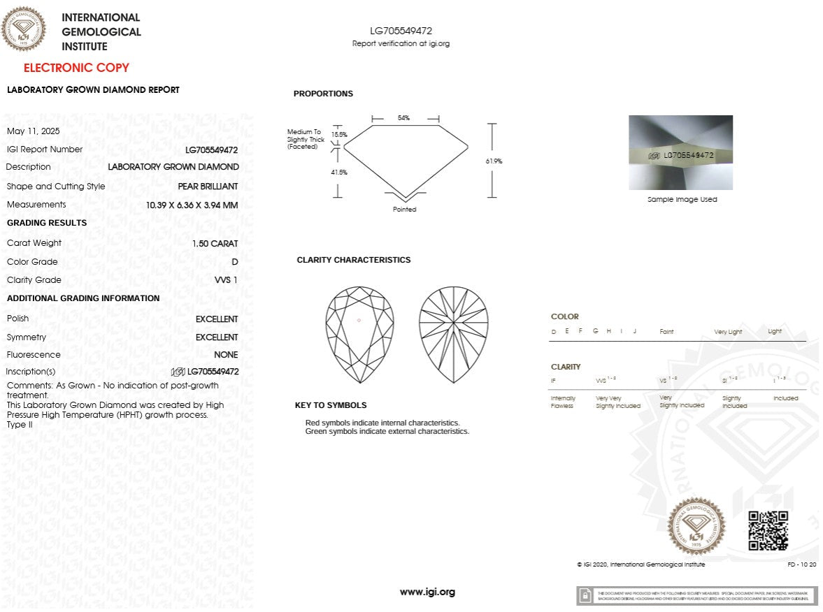 1.50ct D-VVS1 Pear Lab Diamond Lindsey