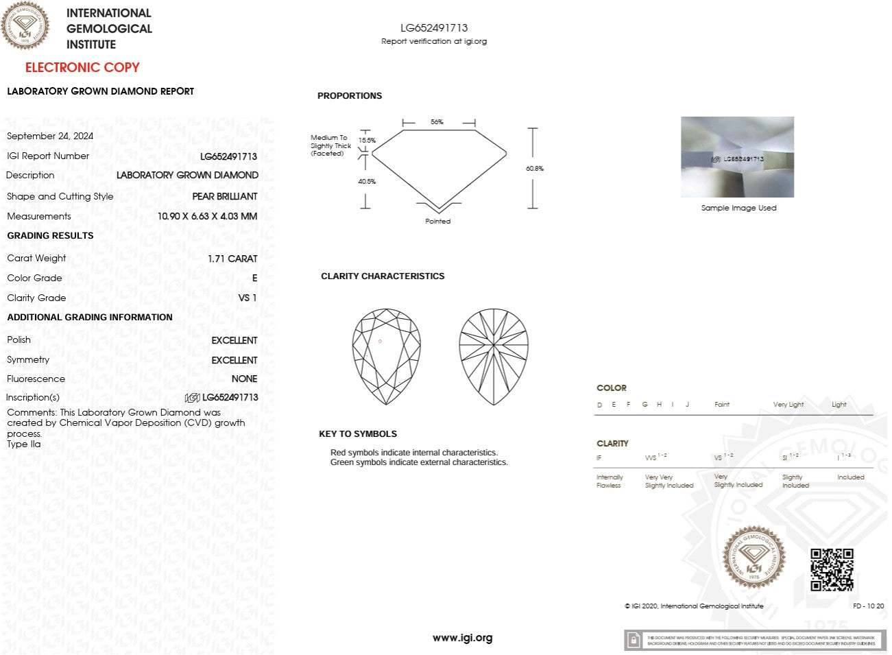 1.71ct E-VS1 Pear Lab Diamond Lindsey