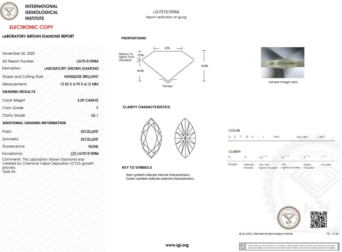 2.09ct F-VS1 Marquise Lab Diamond Petite Gracie