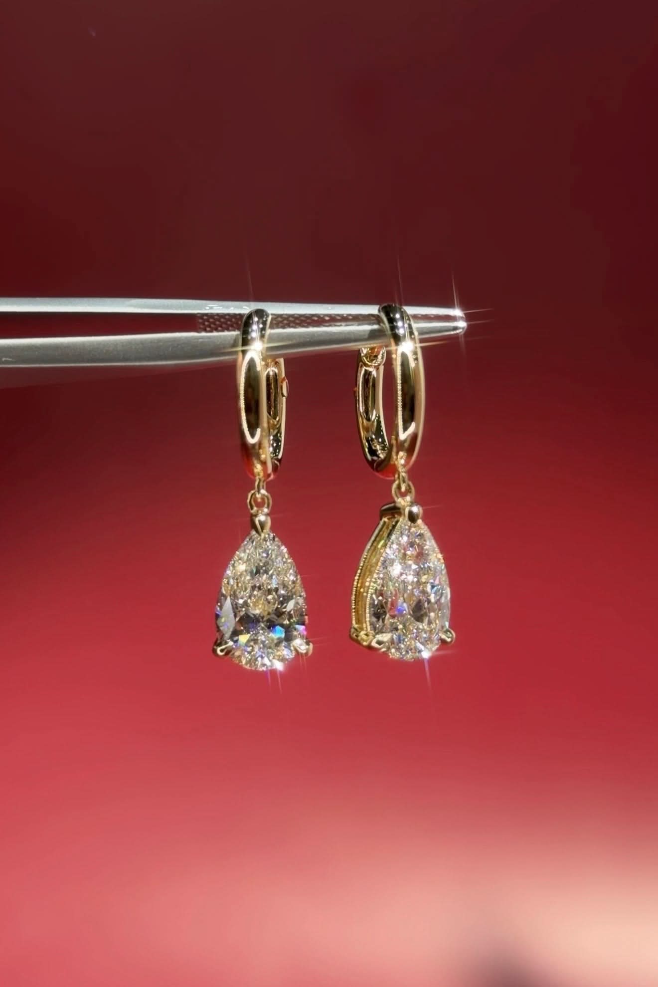 3.5ct Pear Drop High Polish Hoops Yellow Gold