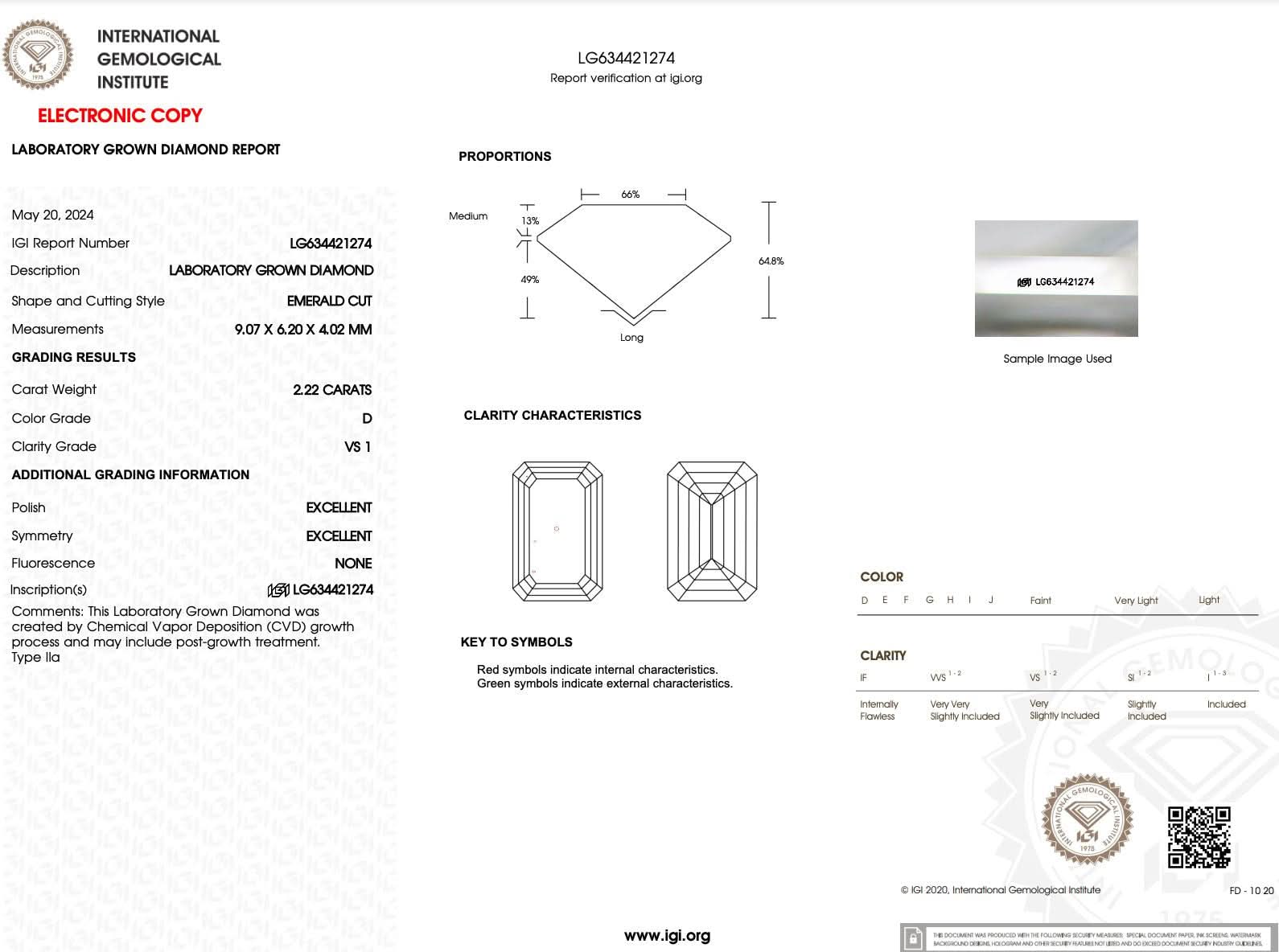 2.22ct D-VS1 Emerald Lab Diamond Sophia