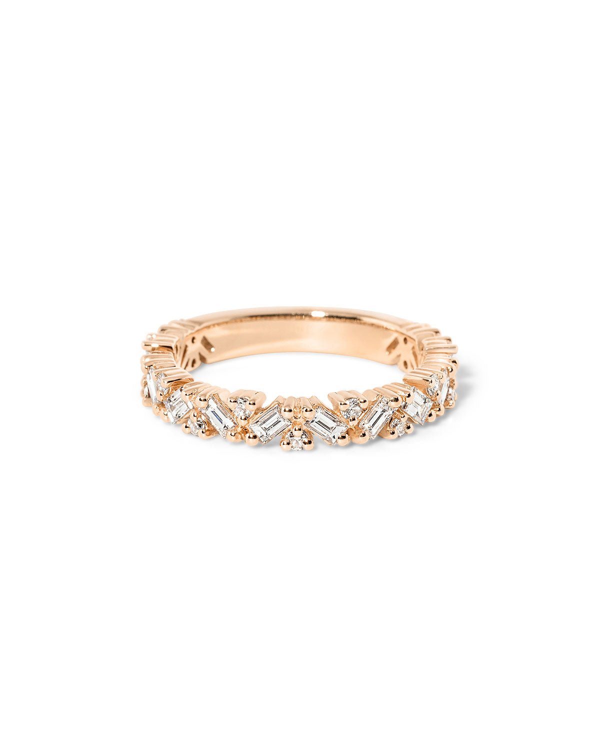 The 3.2mm Marisol features offset emerald and round diamonds.