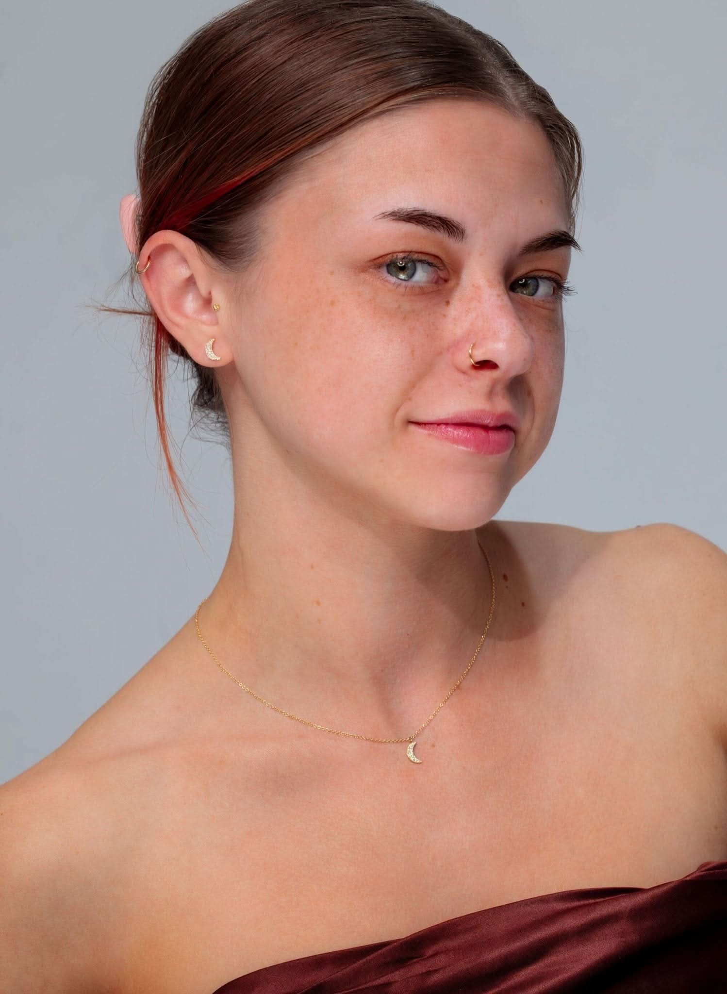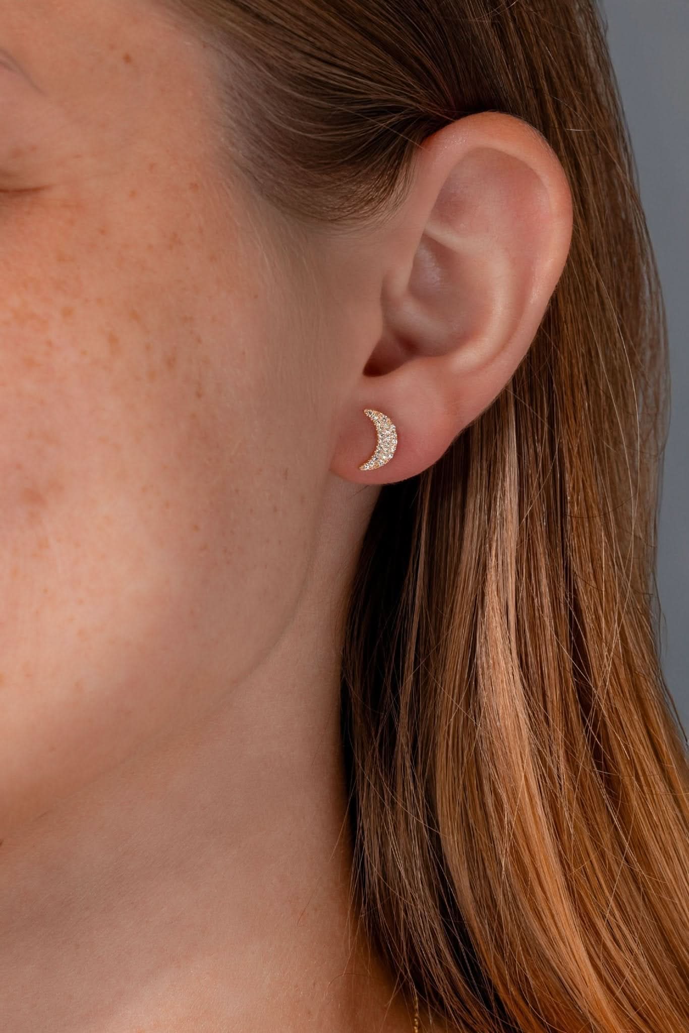 Yellow Gold Pavé Moon Studs