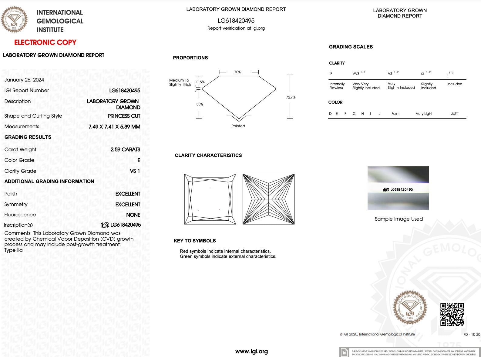 2.59ct E-VS1 Princess Lab Diamond Stephanie