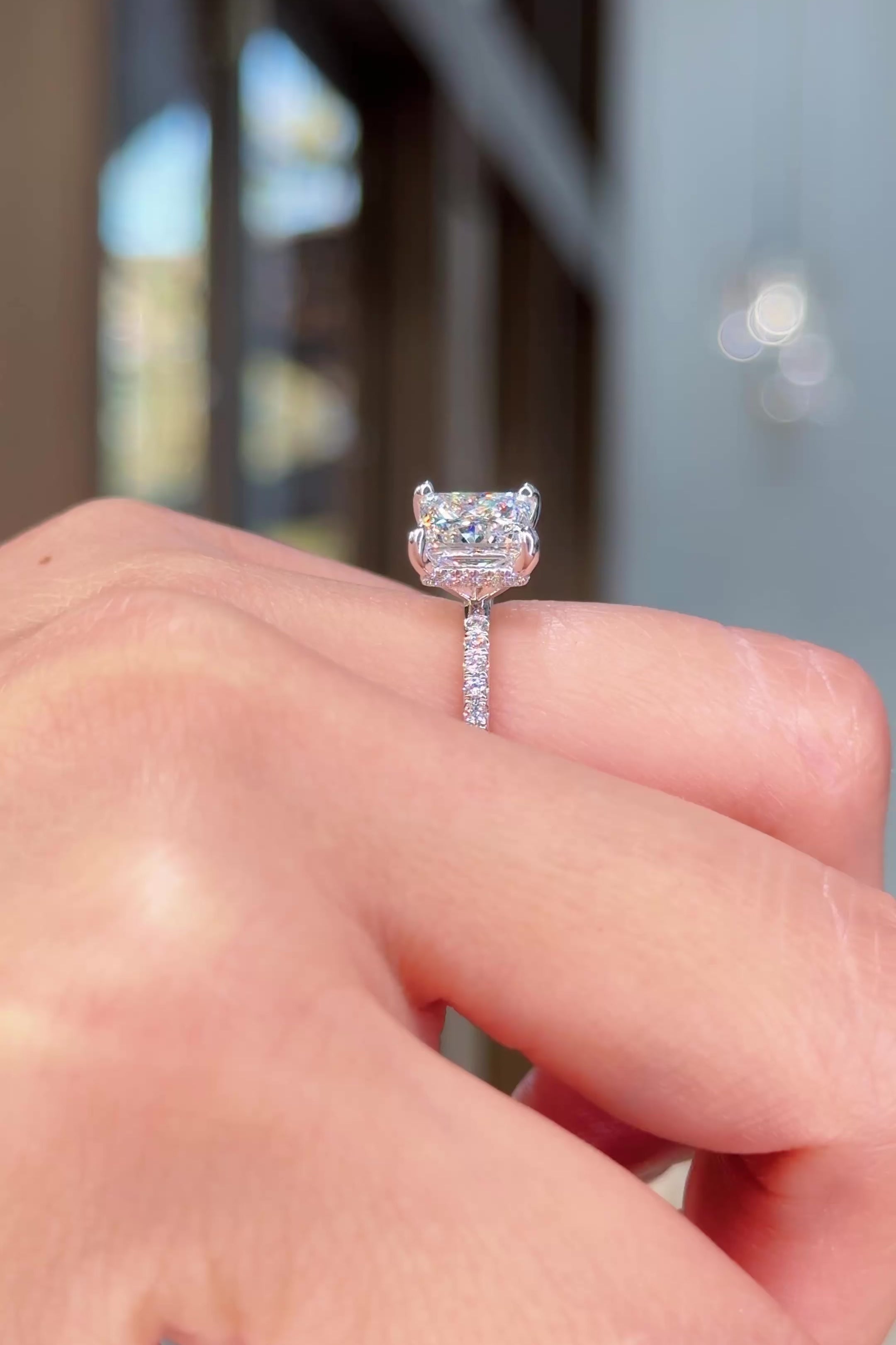 Diamonds and gemstones can appear dull over time due to everyday buildup from lotions, soaps, makeup, and natural oils. We recommend removing your ring before applying products and bringing it in regularly for professional cleaning. Complimentary cleanings and inspections are included for life.