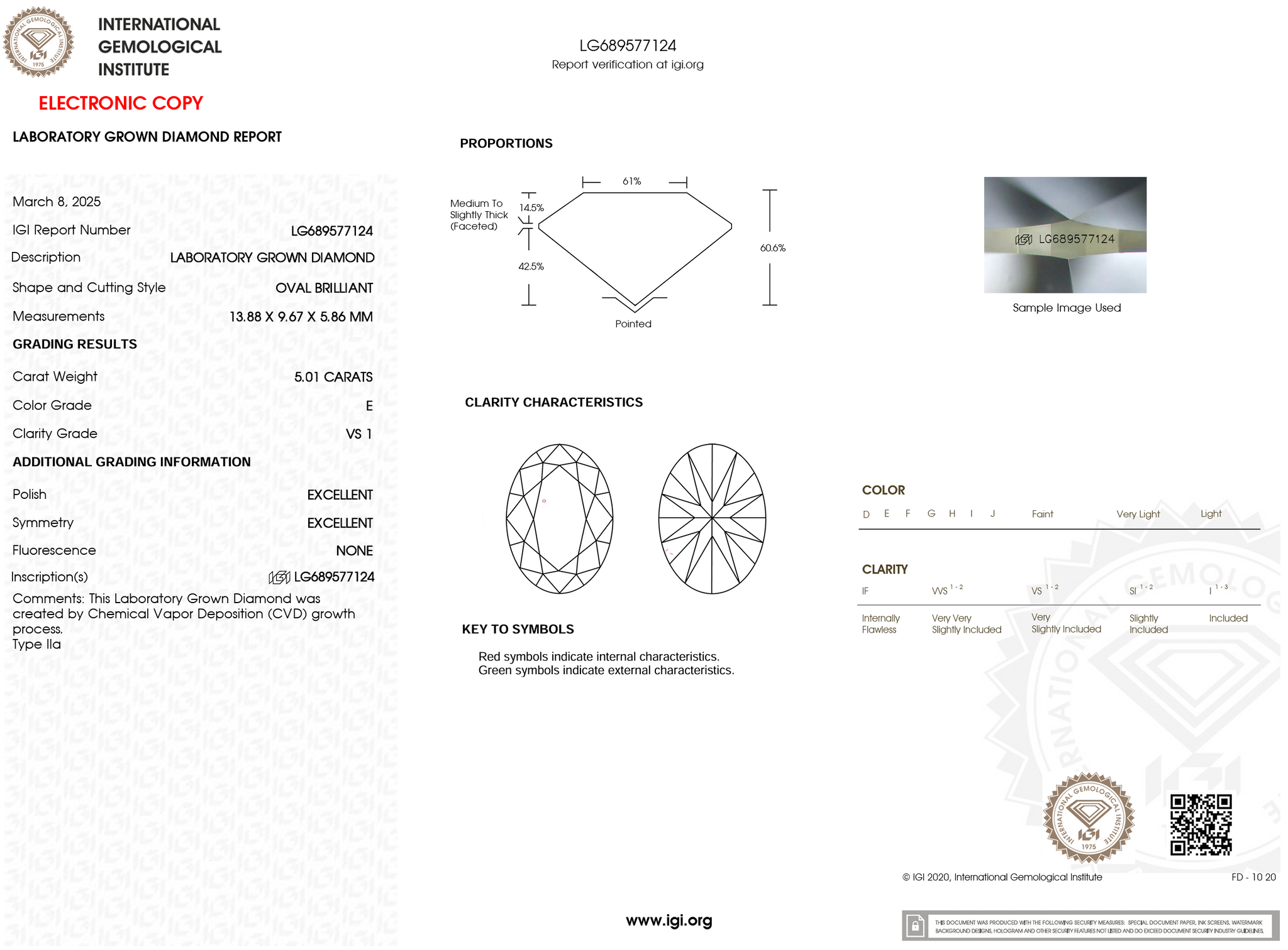 5.01 Carat E-VS1 Oval Lab Grown Diamond - IGI (#121533)